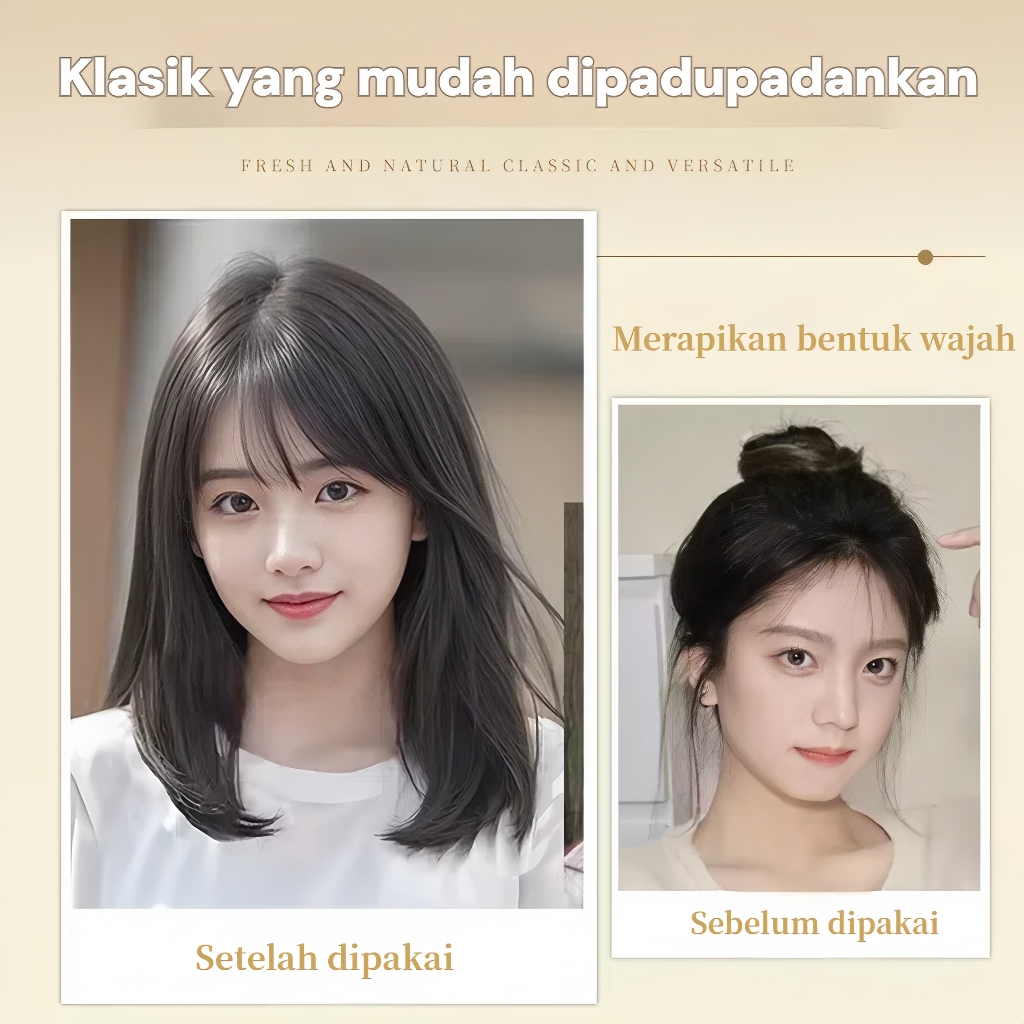 Wig Wanita Setengah Panjang Wig Wanita Full Kepala 40CM Rambut palsu wanita simulasi alami seluruh usia Rambut palsu per