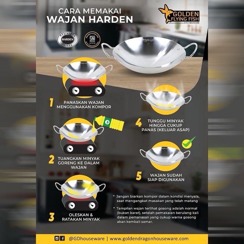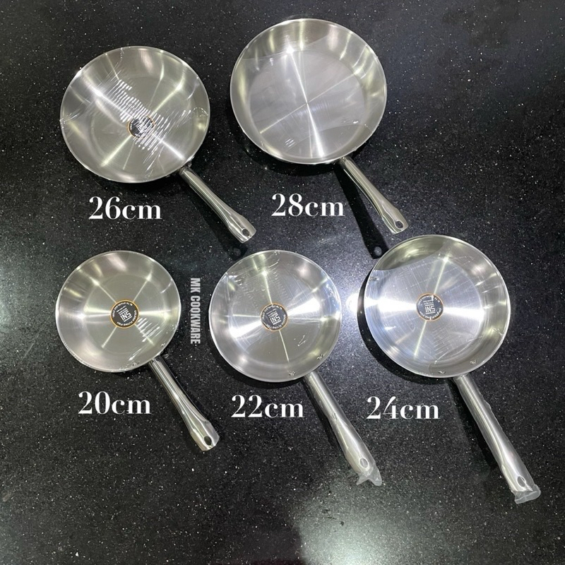 g0ldden Flying Fish - Fry Pan Stainless Harden Steel - Ukuran 20cm, 22cm, 24cm, 26cm dan 28cm - Anti Lengket, Anti Karat, Food Grade