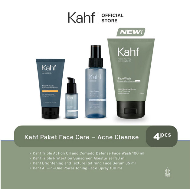 KAHF Paket FACE CARE Isi 4PCS | Face Wash, Sunscreen, Serum, & Toner