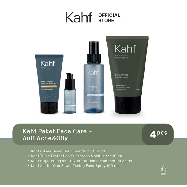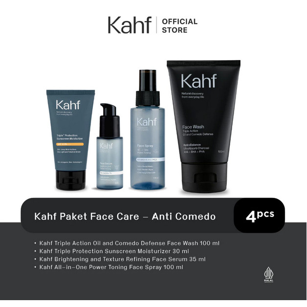KAHF Paket FACE CARE Isi 4PCS | Face Wash, Sunscreen, Serum, & Toner
