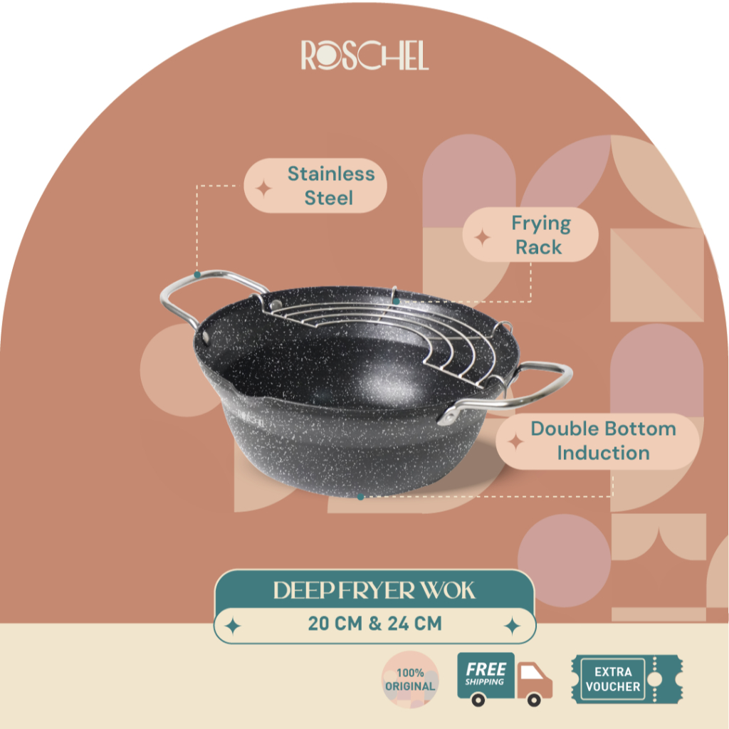 Roschel Deep Fryer Wok 20, 24 cm Wajan Penggorengan Anti Lengket