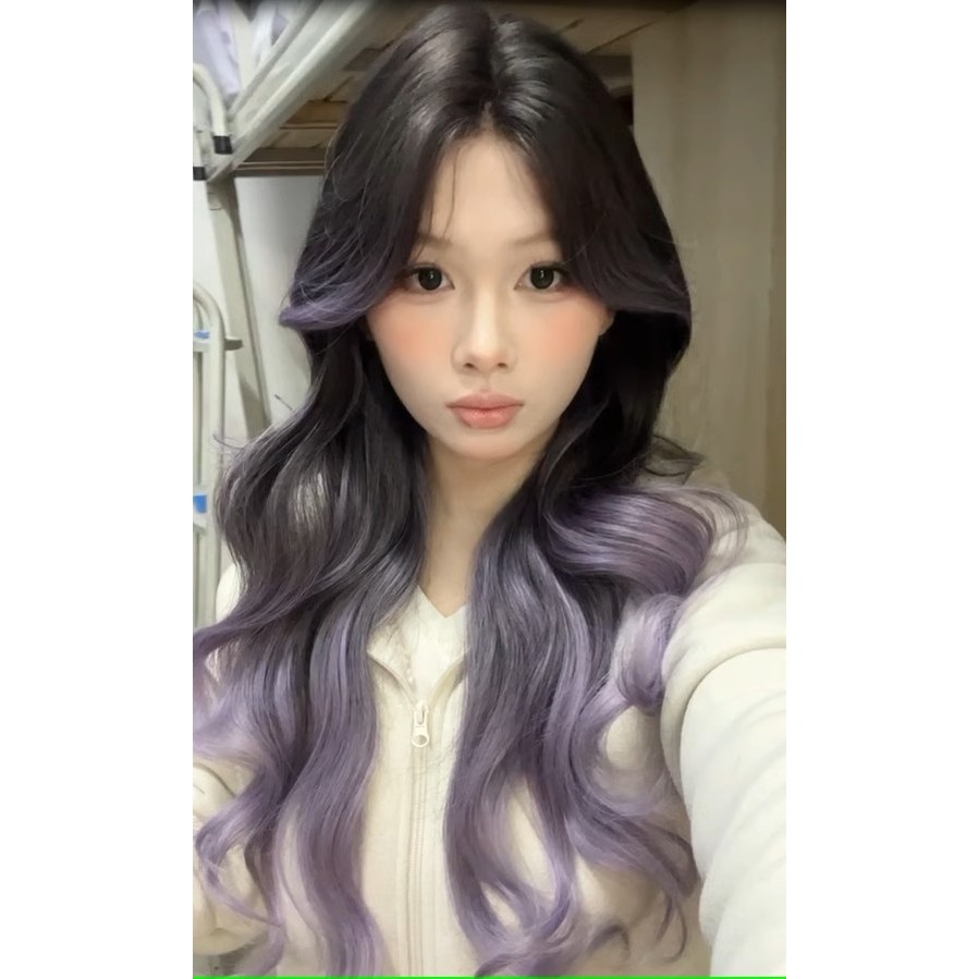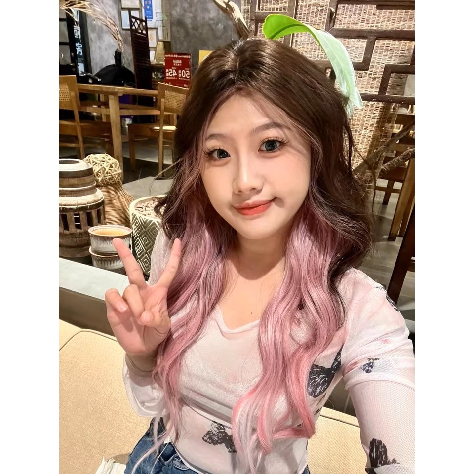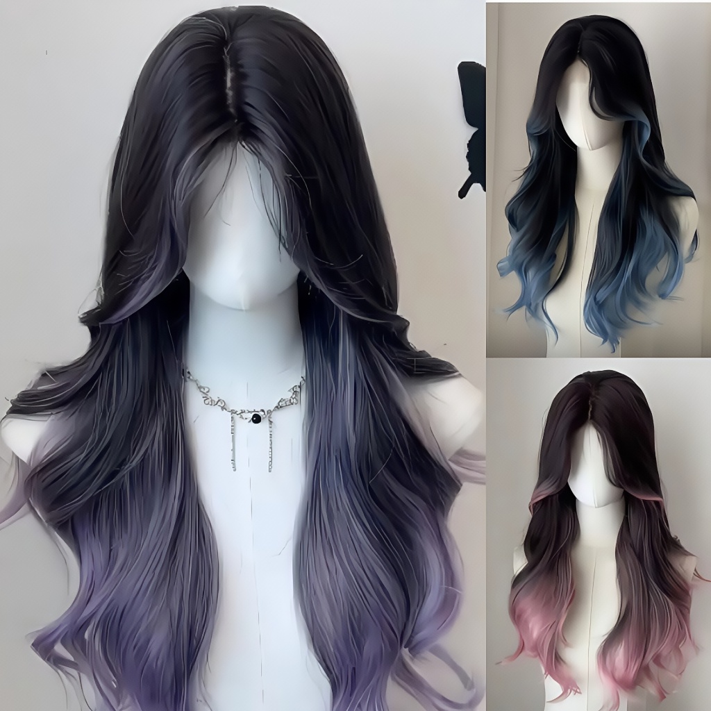 Wig butterfly cut Wig wanita full kepala 65cCM Wig rambut panjang Wig 2 warna Wig Wanita Gradien Yang Disorot Wig rambut