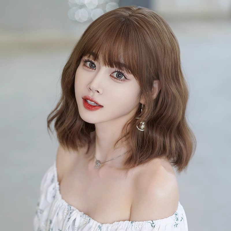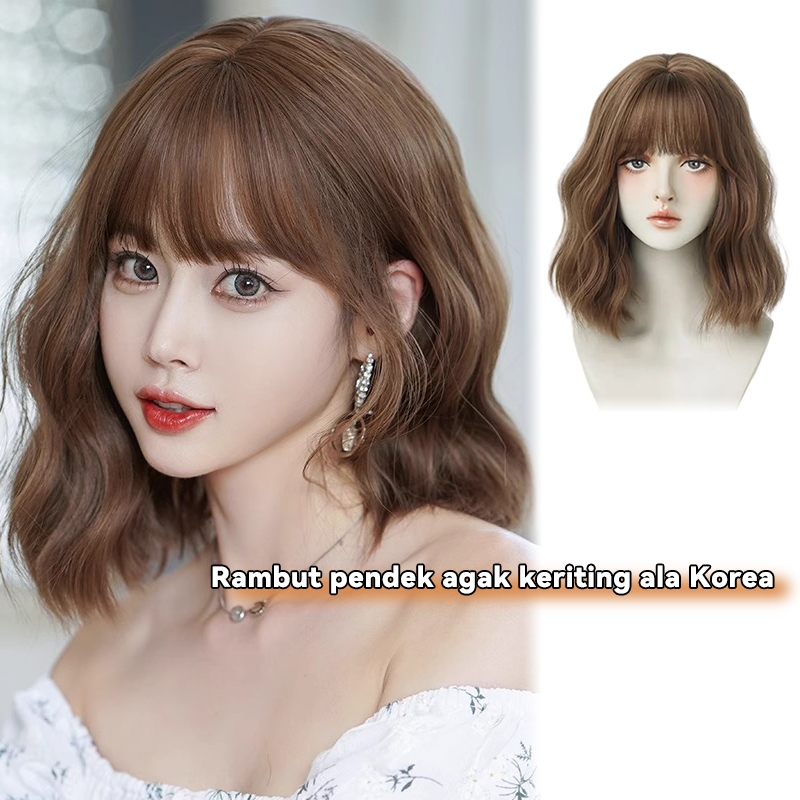King Ka Full Wig Wanita Korea Pendek Lkal Wol Rambut Keriting Pendek Berbulu Alami Rambut Palsu Wanita 37CM