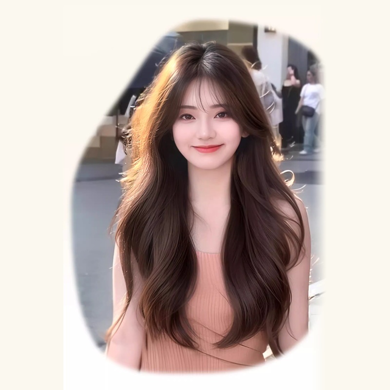 【King Ka】FULL WIG KOREAN LAYER WAVE CURTAIN BANGS/ Rambut Palsu Wanita Style Curly Alami Poni Wig Wanita 60cm