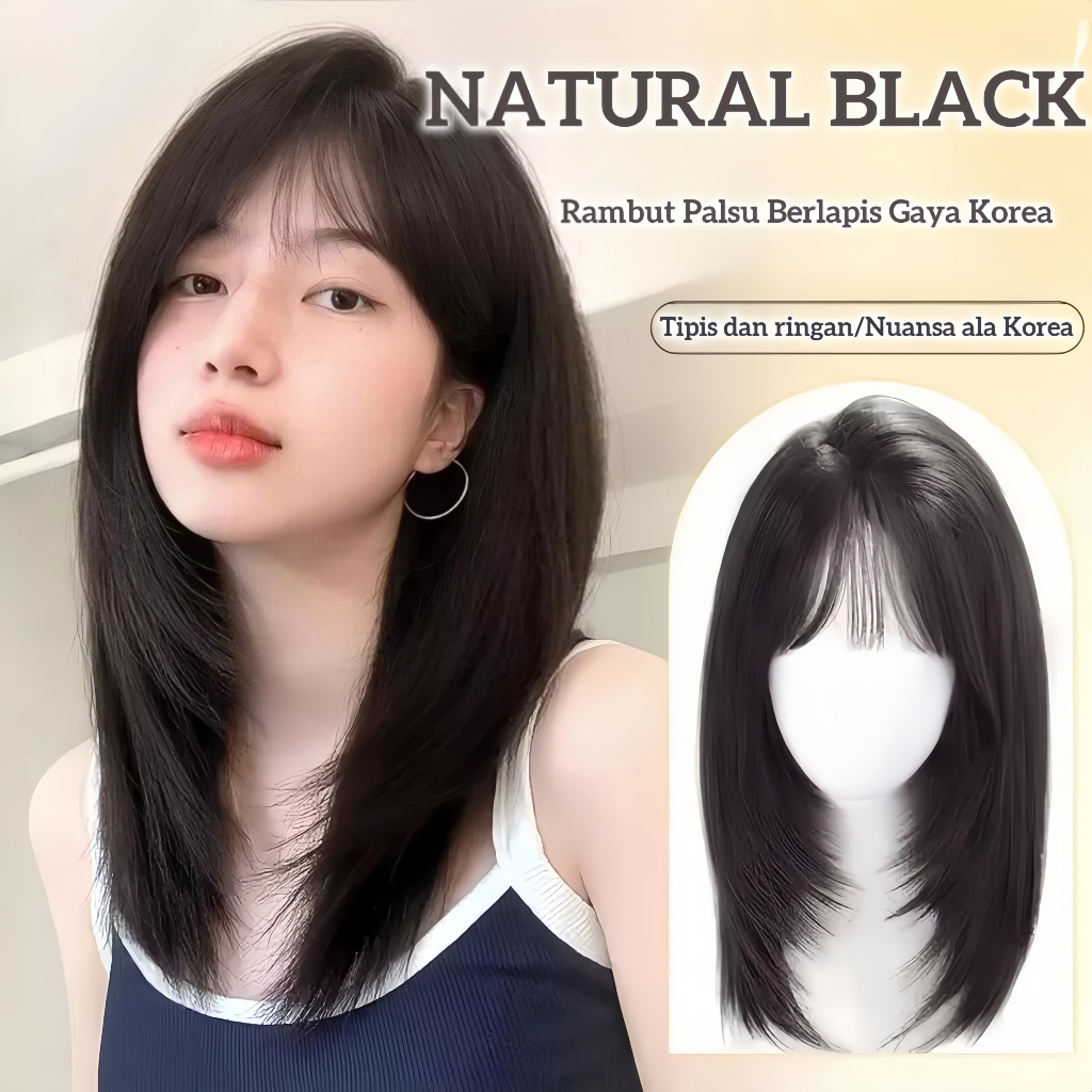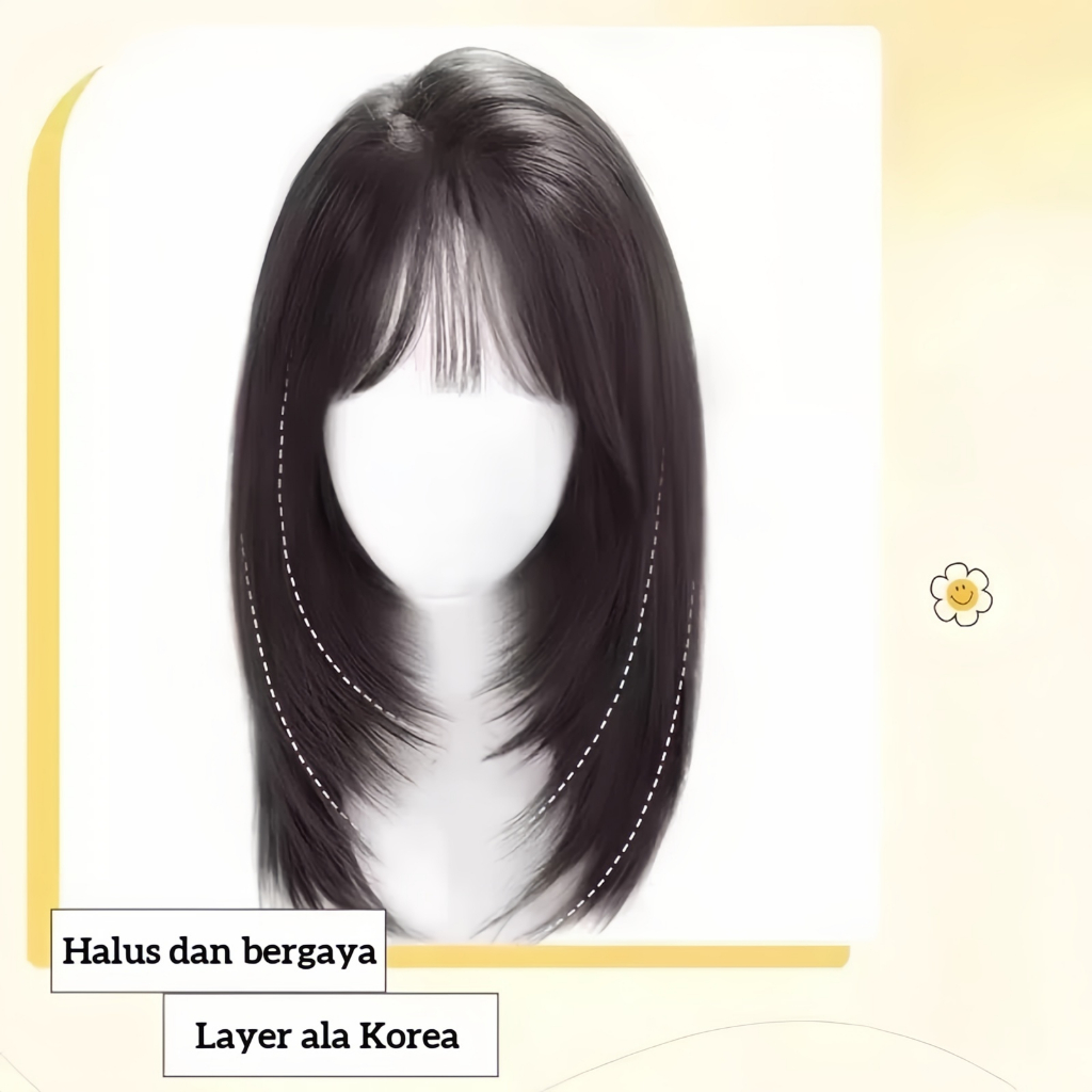 Wig korean style/Wig 40CM rambut palsu wanita panjang/Wig wanita full kepala/Wig daily LAYER/Wig naturaal wanita/Wig seb