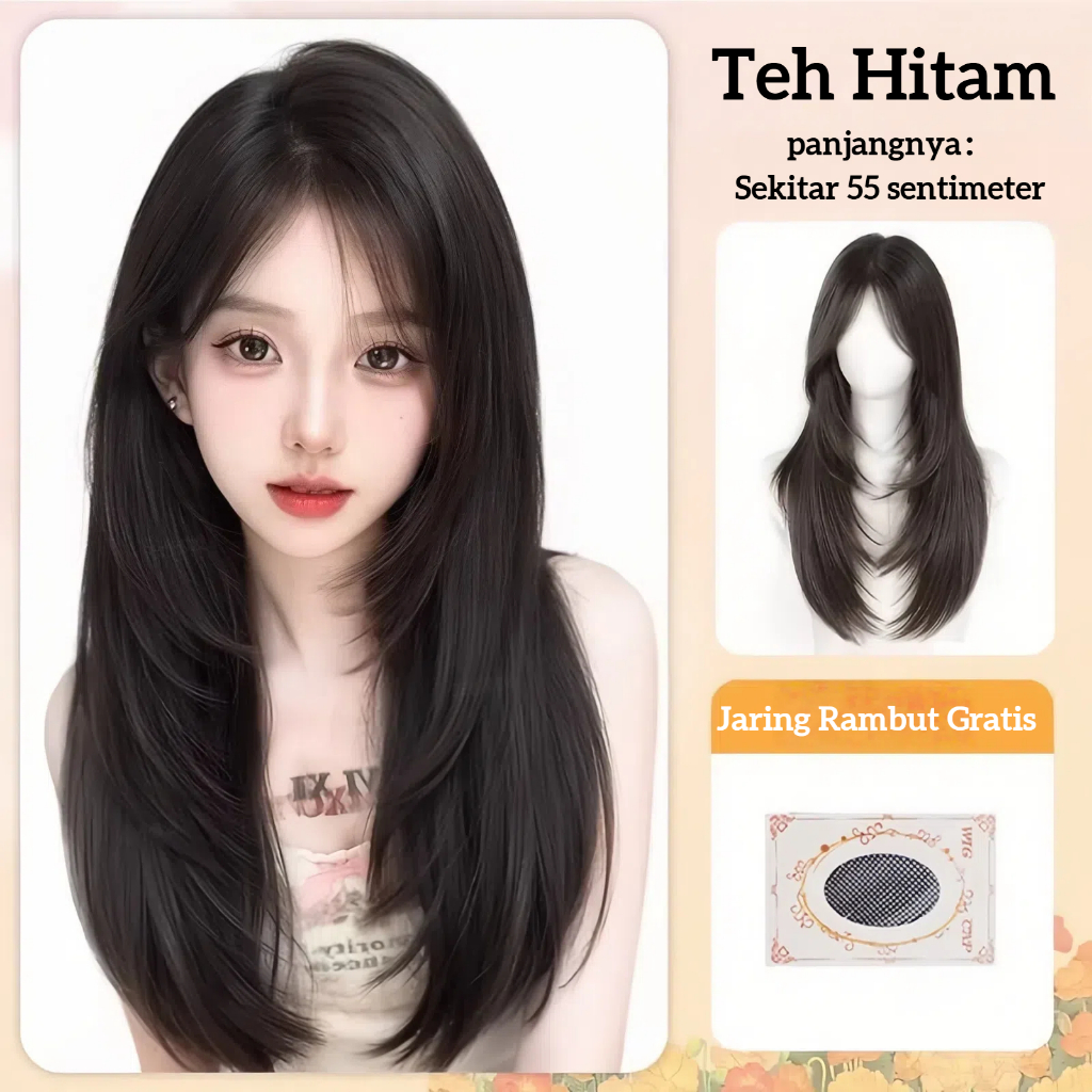 Rambut wig wanita/Wig korean style/Wig wanita full kepala/Wig daily LAYER/Wig naturaal wanita/Wig rambut panjang/Rambut