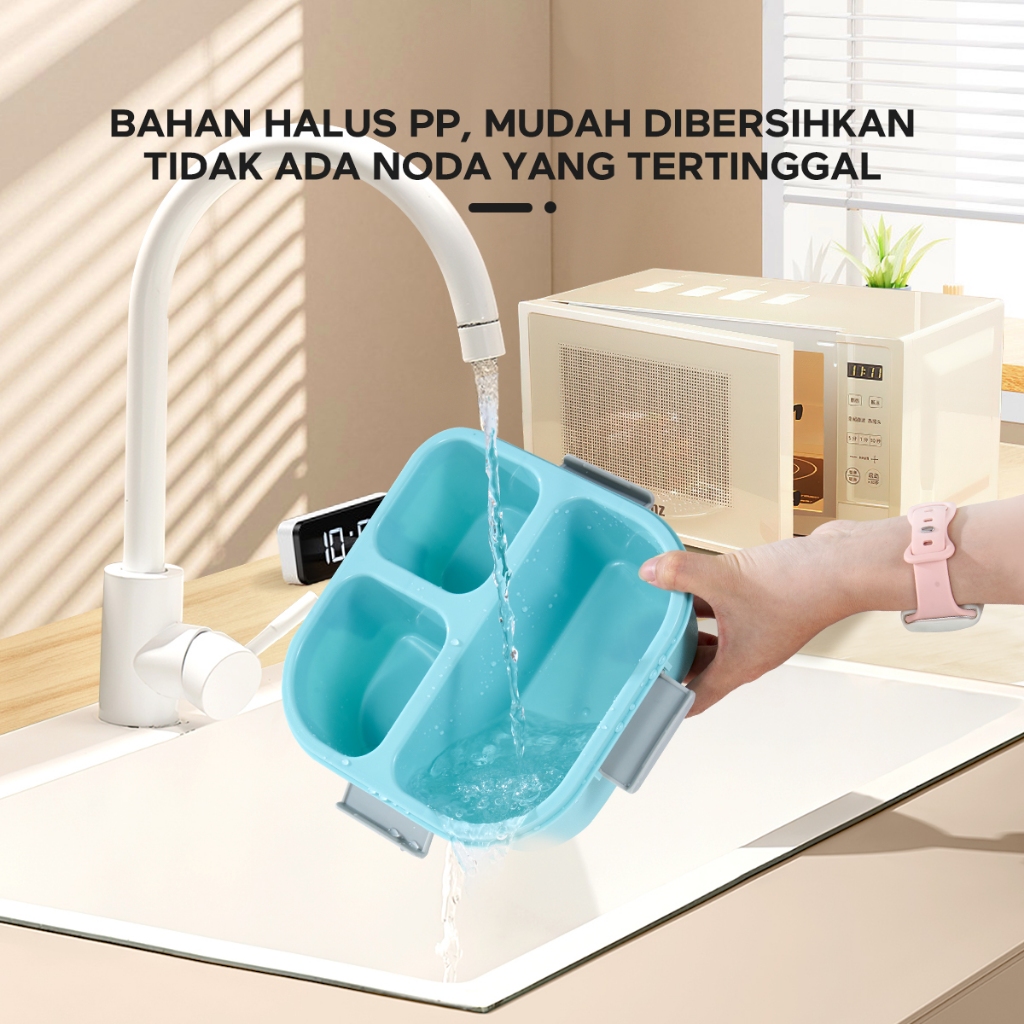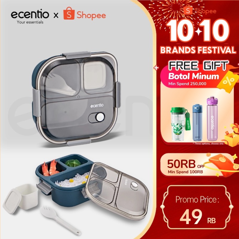 ecentio kotak bekal anti tumpah tumpah 3 grid 1100ml Kotak makan wadah bekal anti tumpah kotak sup 100ml Free Sendok