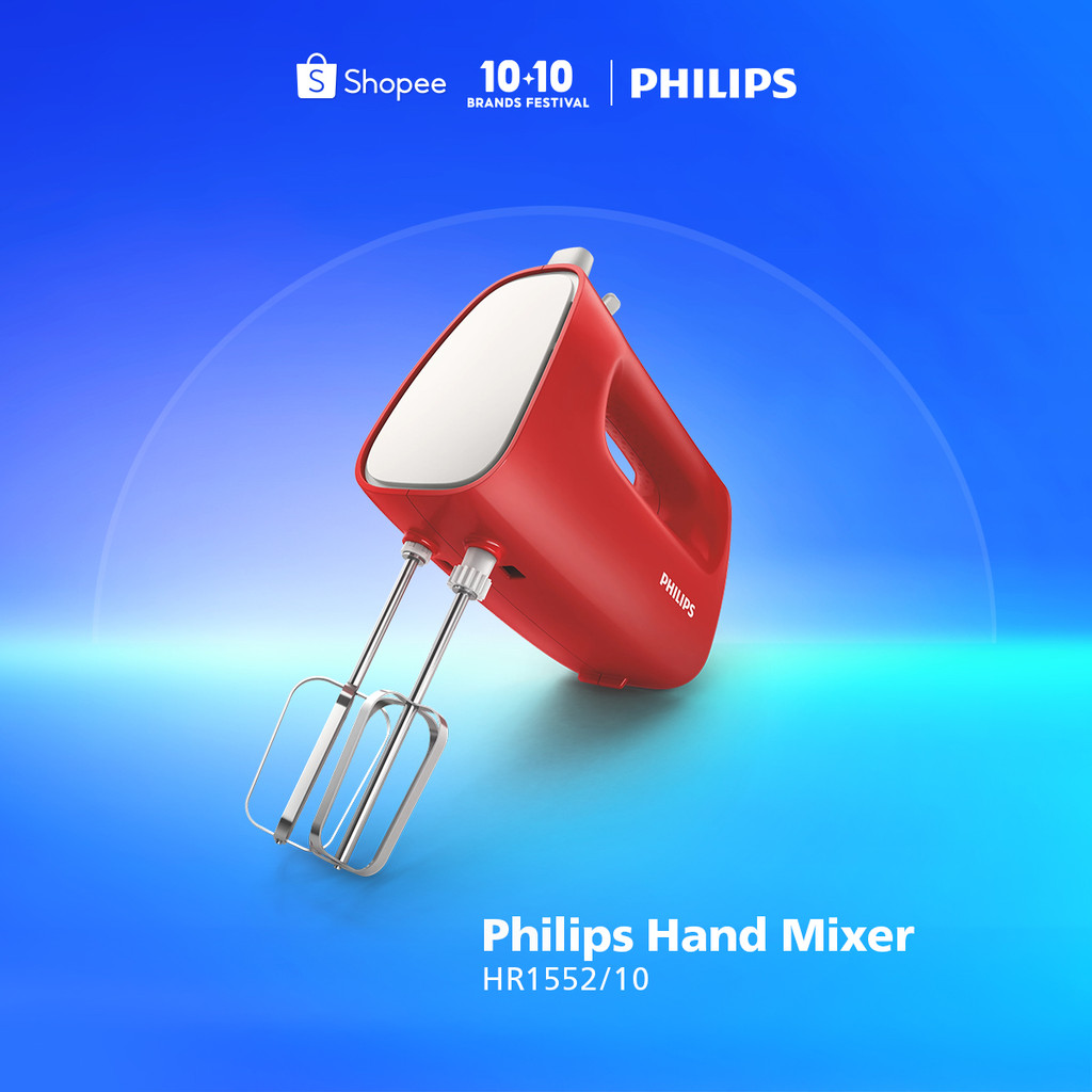 Mixer Philips - HR1552/10 - Hand Mixer - Mikser Philips - Mixer Pencampur - Mixer Kue - Merah