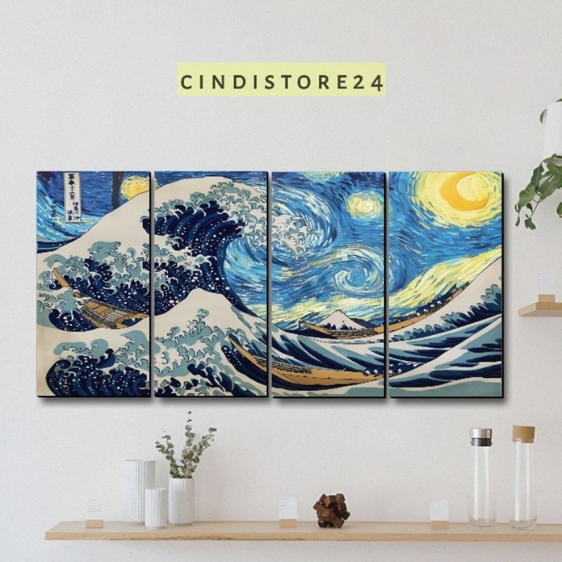 Hiasan dinding aesthetic Poster kayu wave art japan 1 set - Wall decor