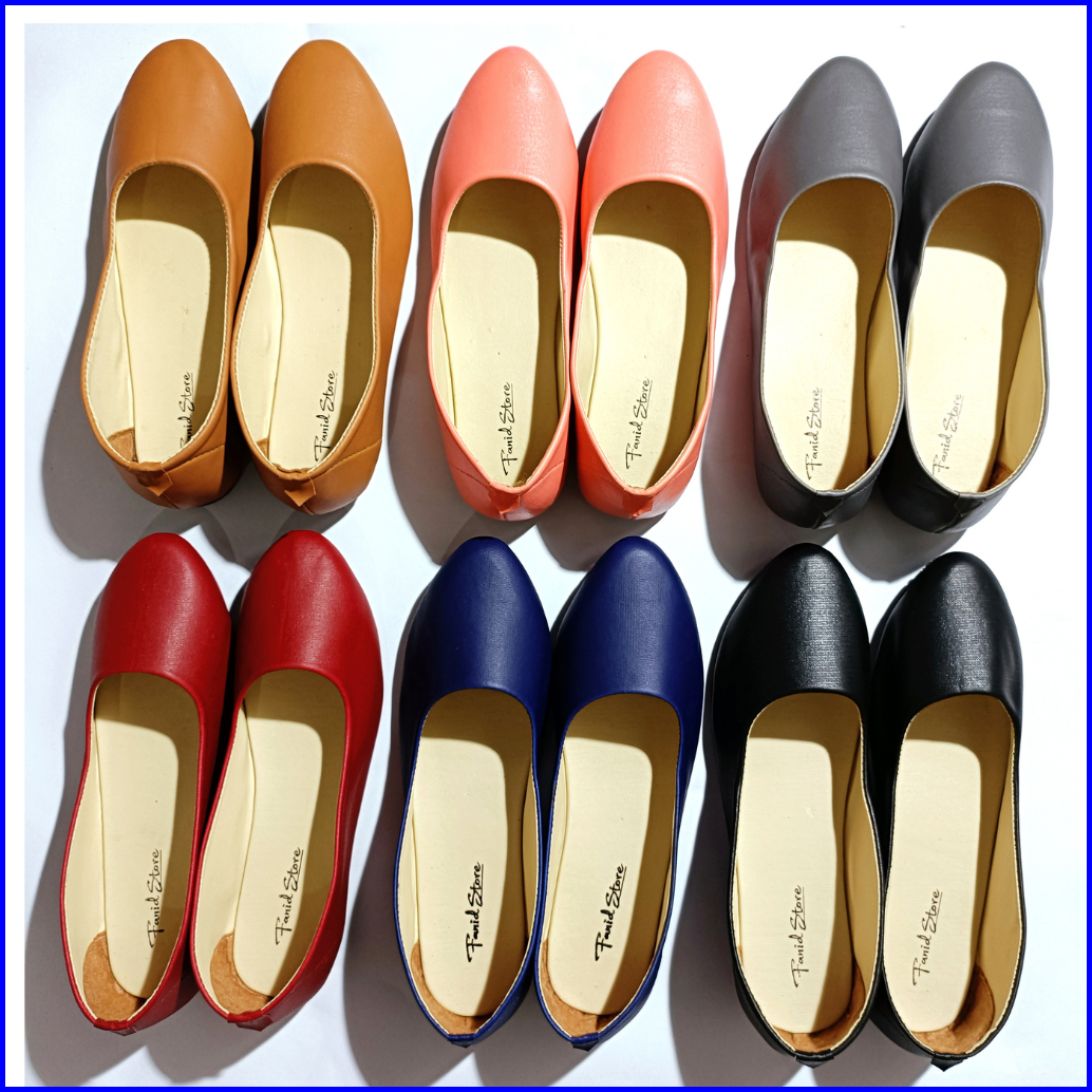 Fanid Store Flat Shoes Sintetis Balet 01 Merah Maroon Biru Dongker Pink Salem Abu Abu Coklat Hitam