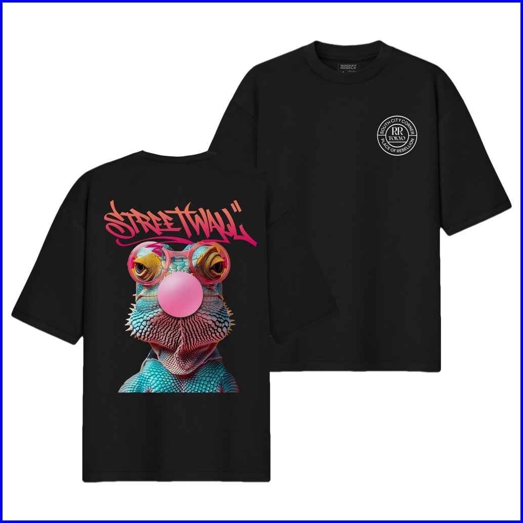 Rocketrebels T-shirt Oversized Black Streetwall Chameleon Premium Cotton24s