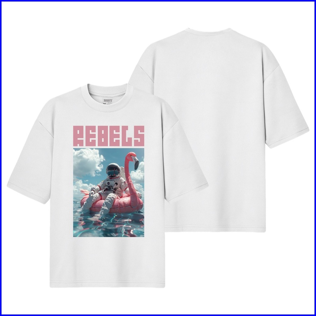Rocketrebels T-shirt Oversized White Rebels Flamingo Premium Cotton24s