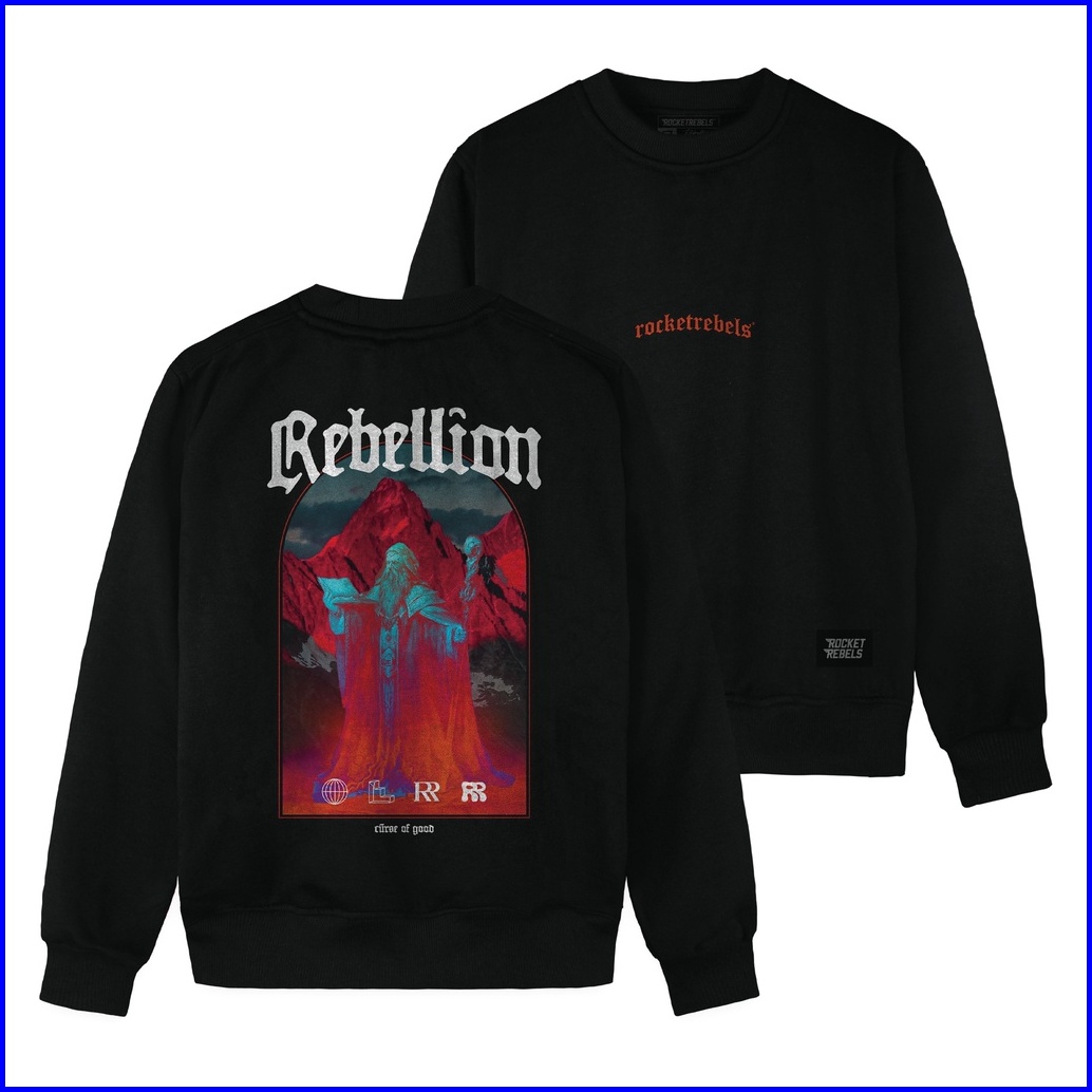 Rocketrebels Crewneck Black Curce Of Good Cotton Fleece Unisex Street Wear Rr.sw-07