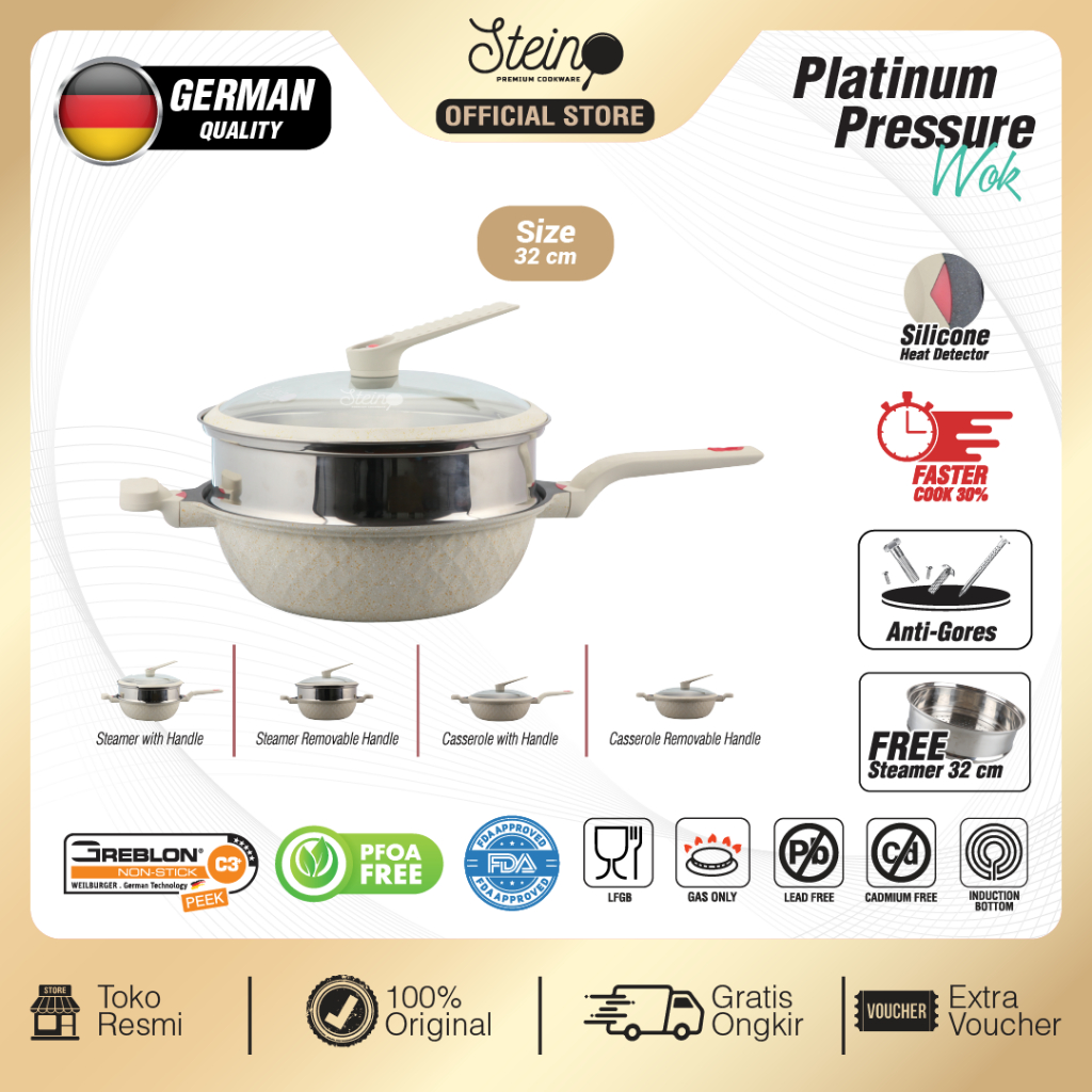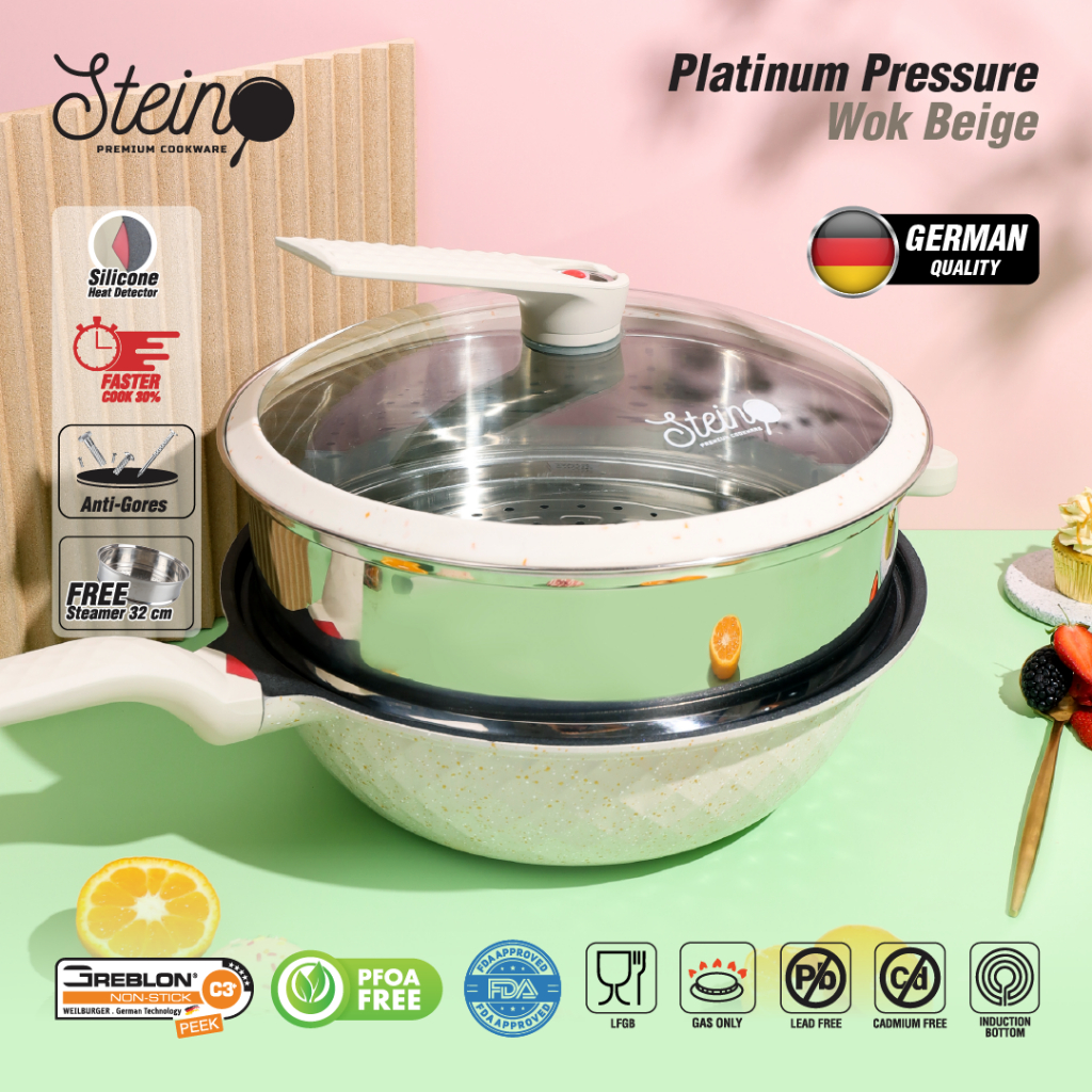 STEIN Wok Platinum Beige | Panci Marble Coating Anti-Baret