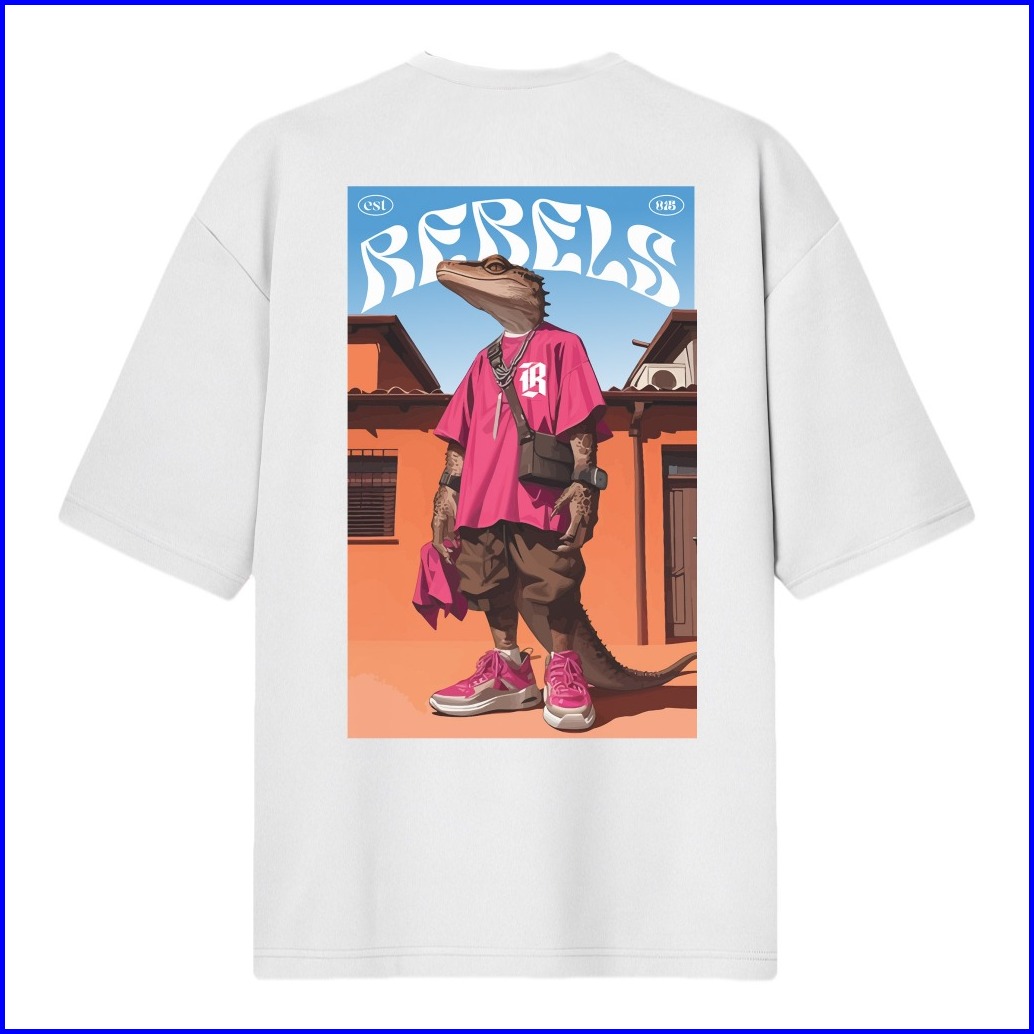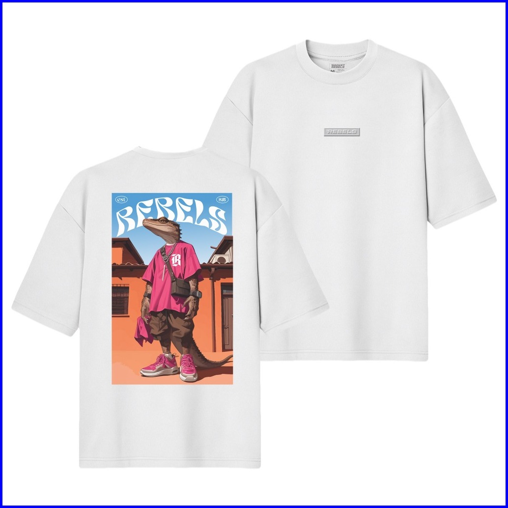 Rocketrebels T-shirt Oversized White Rebels Gecko Premium Cotton24s