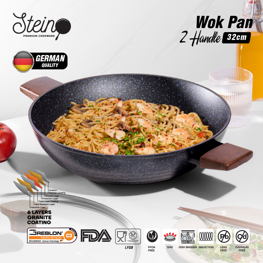 STEIN Onyx Wok Pan (Panci GERMAN Lapisan Coating Granite Anti-Lengket)- 32cm