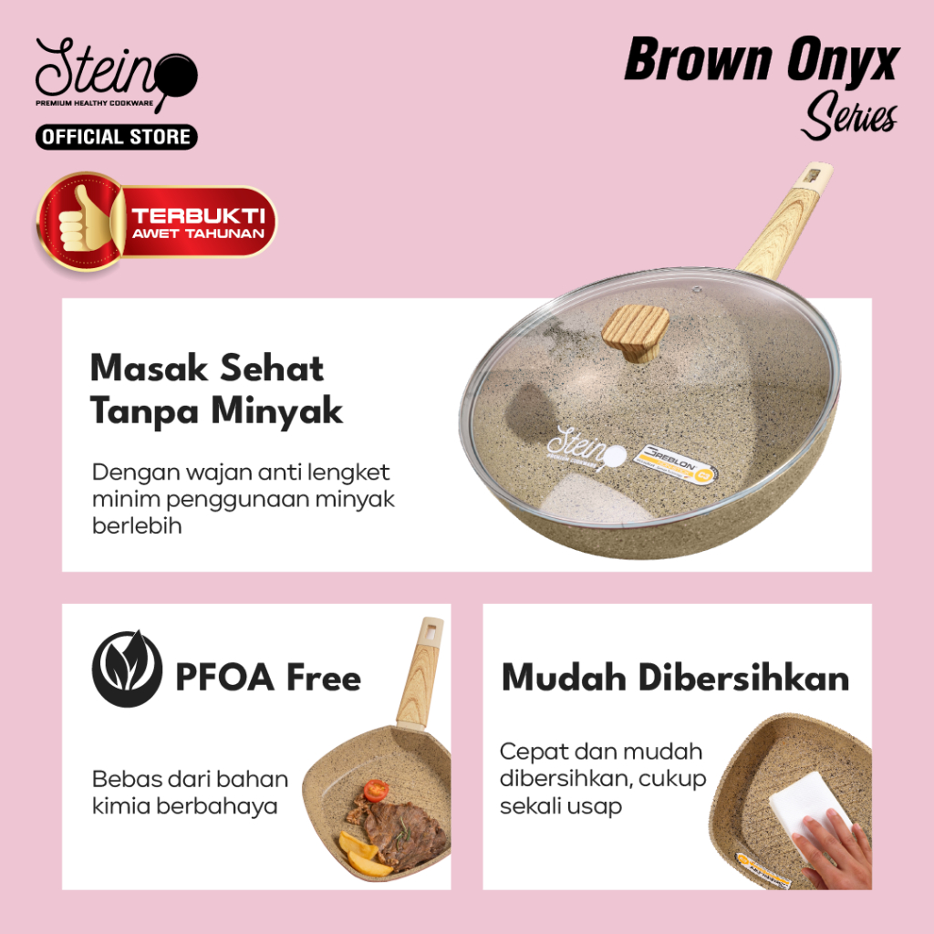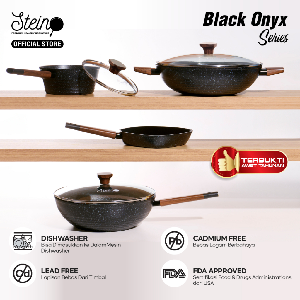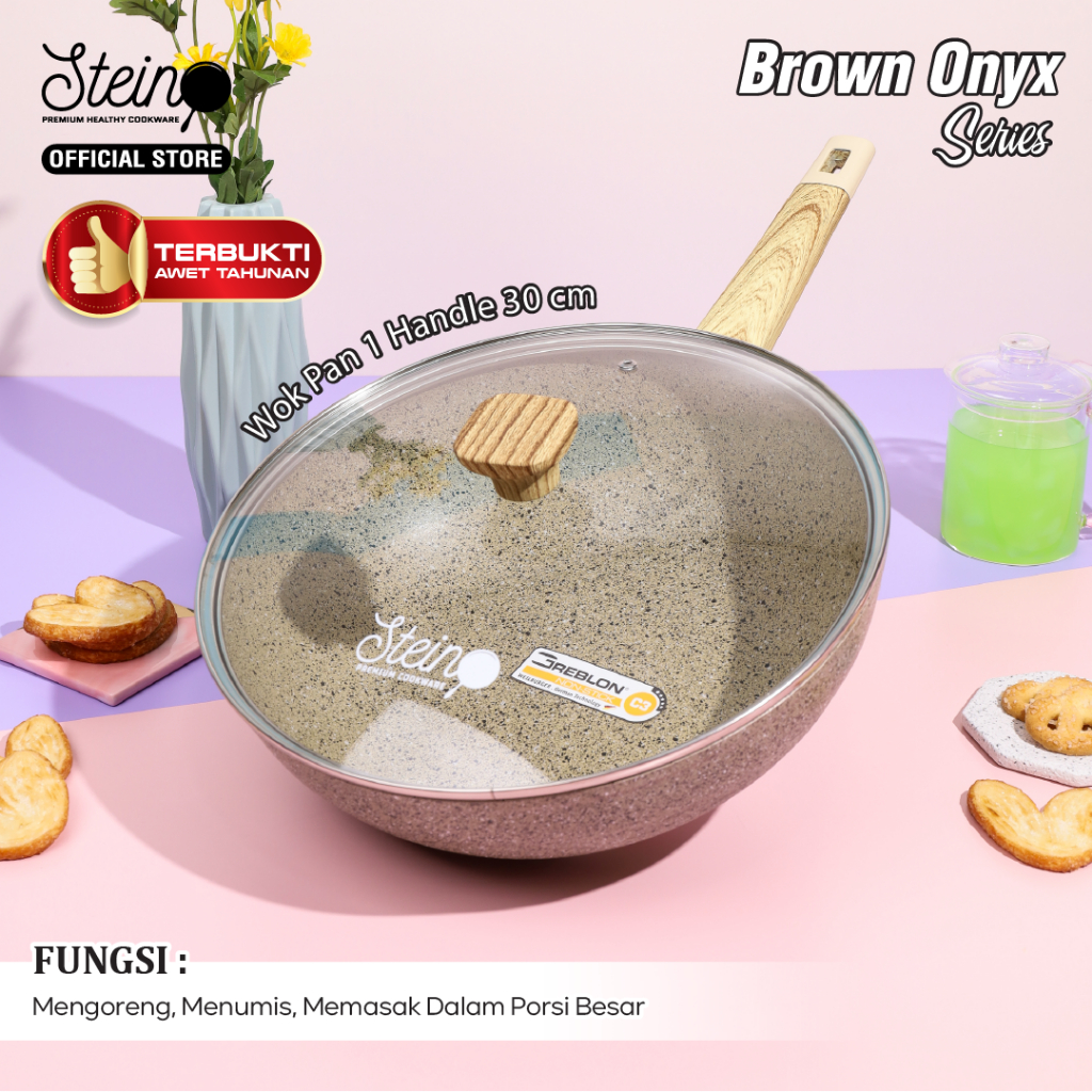 STEIN Onyx Wok Pan Panci GERMAN ANTI-LENGKET (6 Layer Granite German Greblon)- 30cm (Panci Wajan)