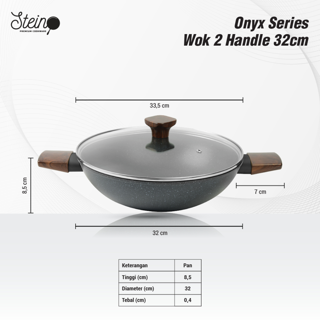 STEIN Onyx Wok Pan (Panci GERMAN Lapisan Coating Granite Anti-Lengket)- 32cm