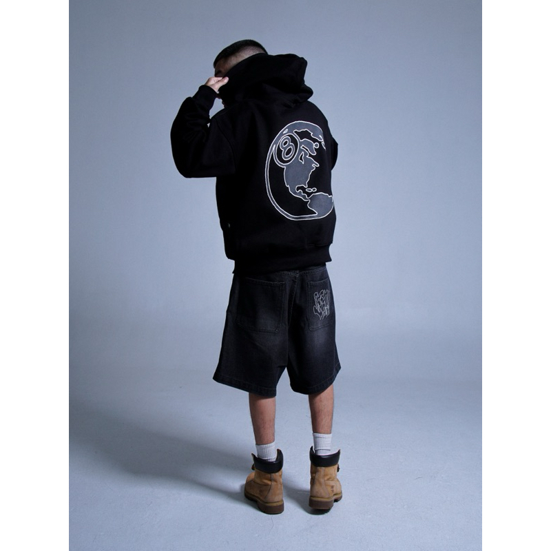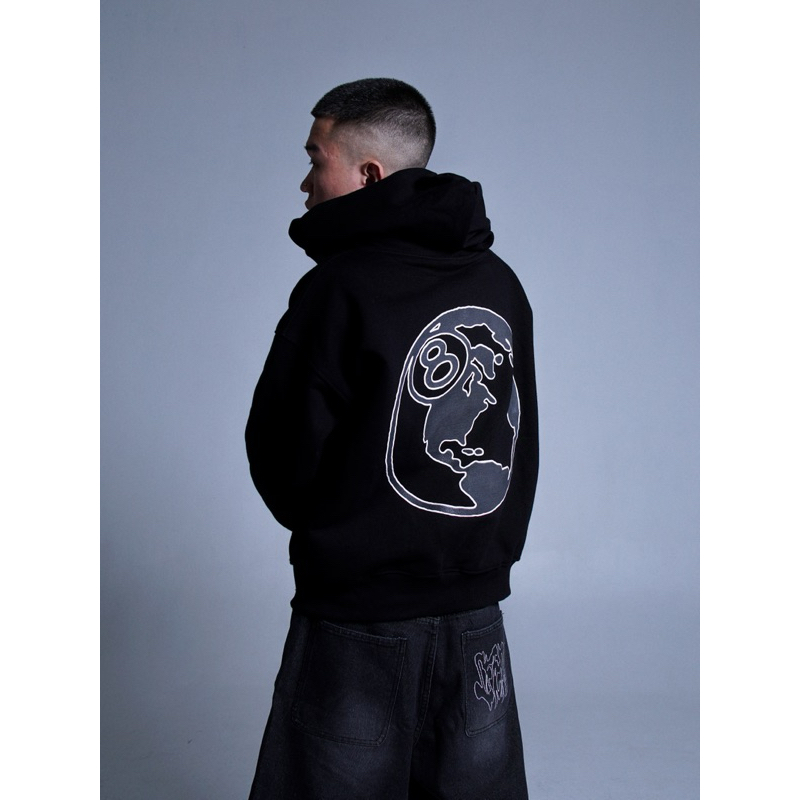 Satisfaction Hoodie Zipper Boxy 375GSM 8 Ball Puff Black