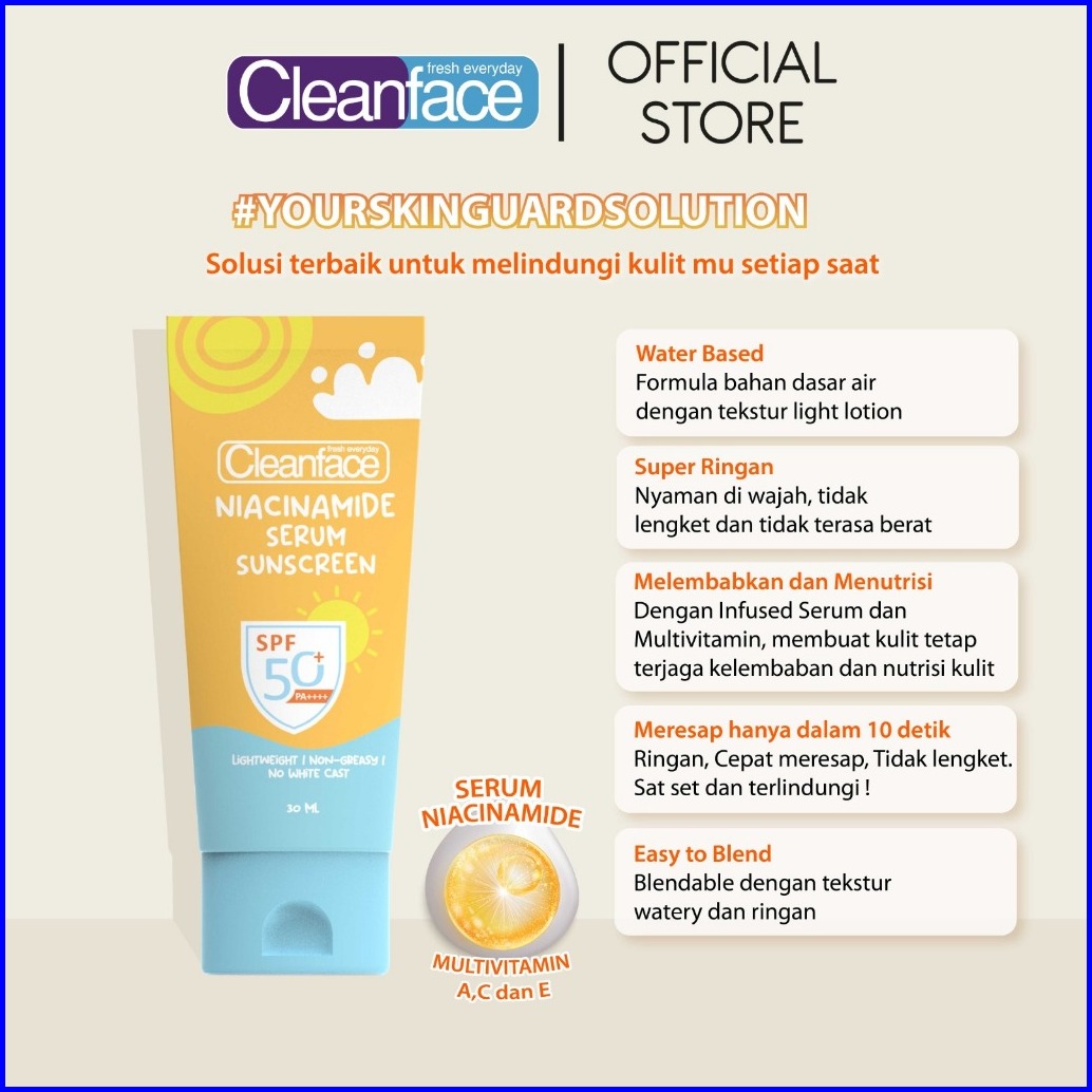 Purbasari Cleanface Niacinamide Serum Sunscreen Spf 50 Tube