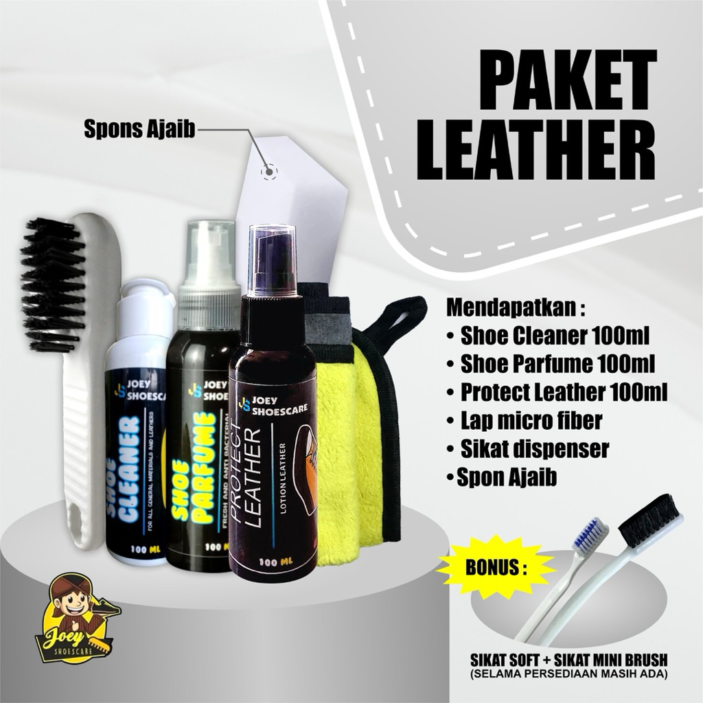 Pembersih Sepatu Joey Paket hemat - Sabun Cuci Sepatu Shoe Cleaner + Parfum Anti Bau & Bakteri + Sikat + Lap Microfiber
