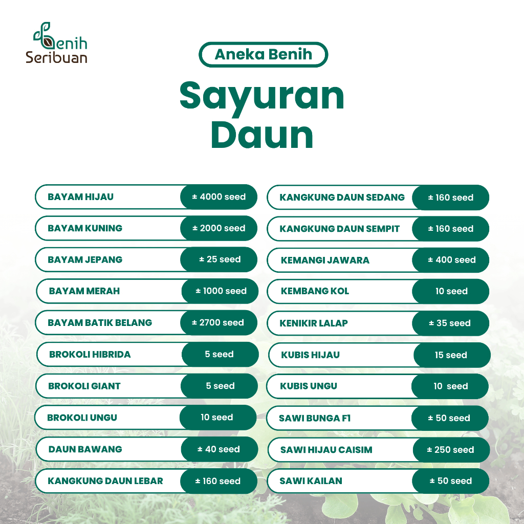 Benih Seribuan - Aneka Benih Sayuran Daun Sayur Hidroponik Varian Unggulan