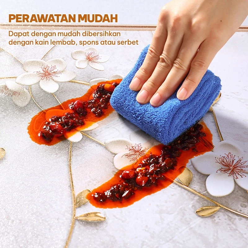 Taplak Meja Makan Motif Emboss Aesthetic Bahan PVC Premium Table Cover Berbagai Pilihan Ukuran - B