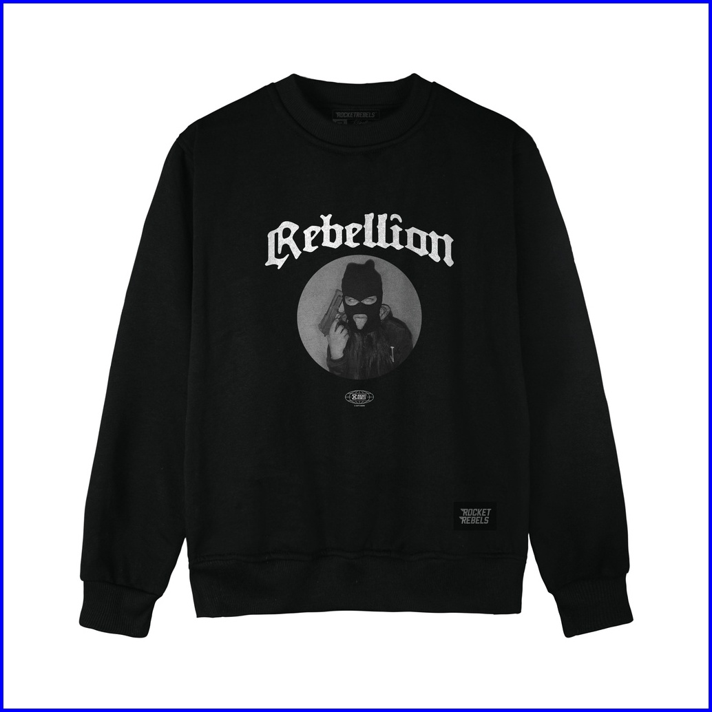 Rocketrebels Crewneck Black Rebellion Cotton Fleece Unisex Street Wear Rr.sw-05