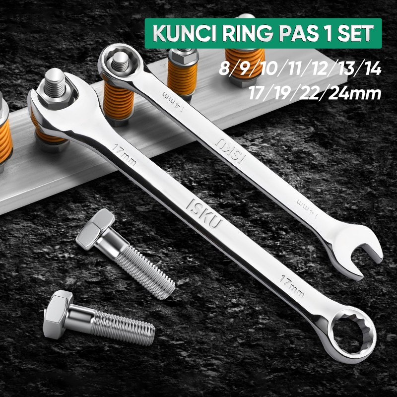 ISKU Kunci Ring Pas Set Wrench Spanner 8mm-24mm Bahan Kuat Anti Karat Alat Perkakas