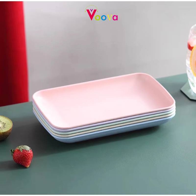 VOOVA Wheat Straw Piring Persegi Panjang / Piring Sushi Rumah Tangga / Piring Camilan Barbekyu / Piring Gulung Usus / Piring Plastik