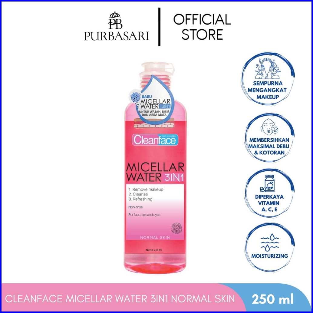 Cleanface Micellar Water 3in1 For Normal Skin 250ml Pembersih Wajah Pembersih Makeup Waterproof