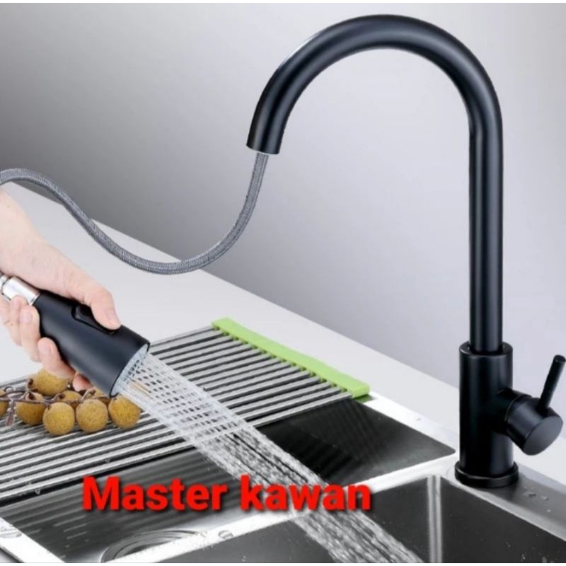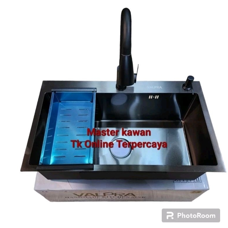 Paket Lengkap Kitchen Sink Stainless VALPRA 7545 HITAM + KRAN TARIK FLEKSIBEL HITAM BLACK