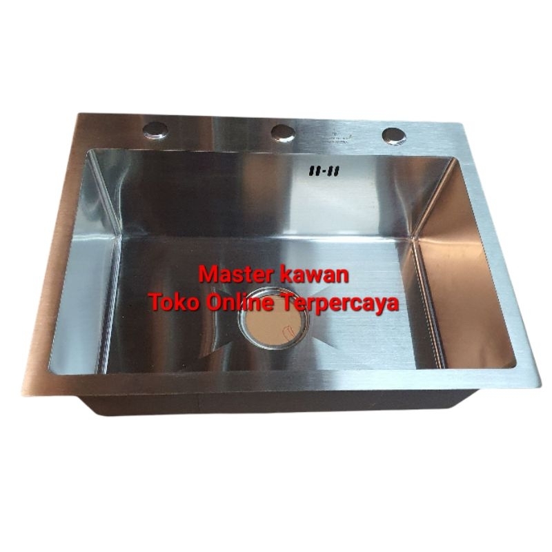Paket Lengkap Kitchen Sink Stainless 6045 TIRISAN TARIK + KRAN TARIK FLEKSIBEL SUS 304