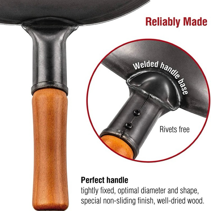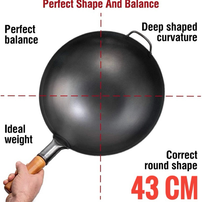 Carbon Steel Wok 43 Dan 45 Cm Preseasoned Chinesse traditional Gagang Kayu