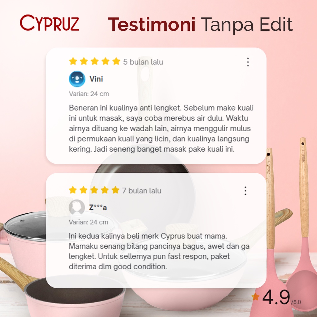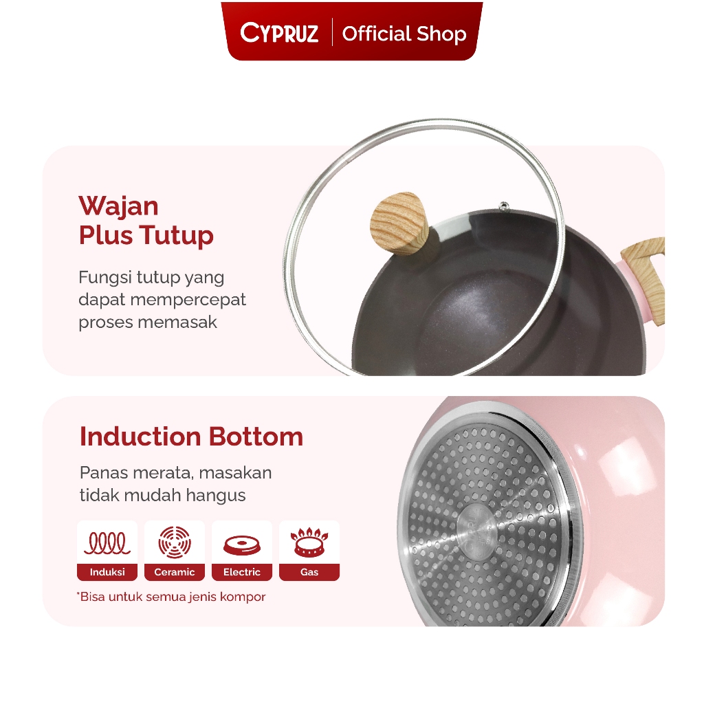 Cypruz Wajan Kuali Anti Lengket Wok Pan Non Stick Pink Ceramic Series Dengan Tutup