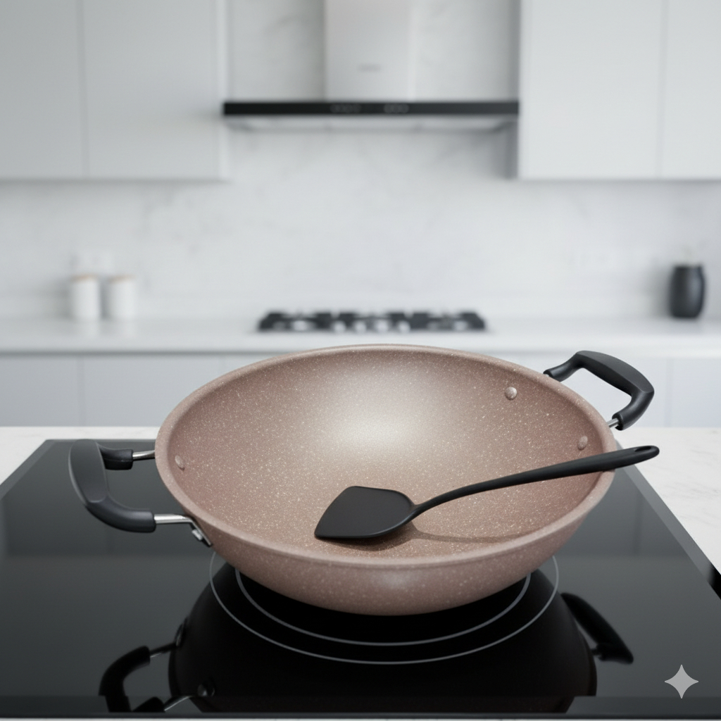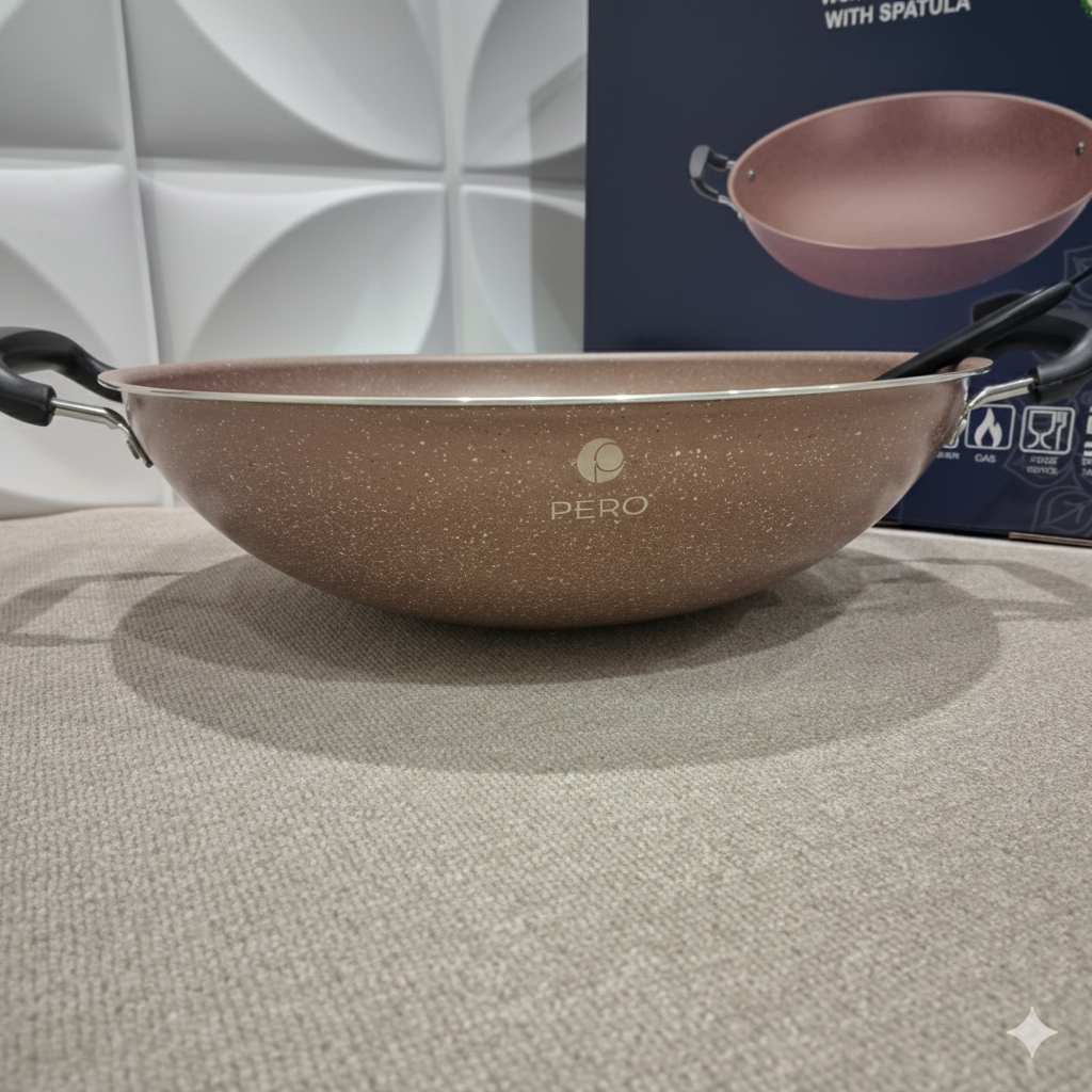 READY STOK PERO Wokpan 40cm Free Spatula / Panci Biogranite Nonstick Anti Lengket