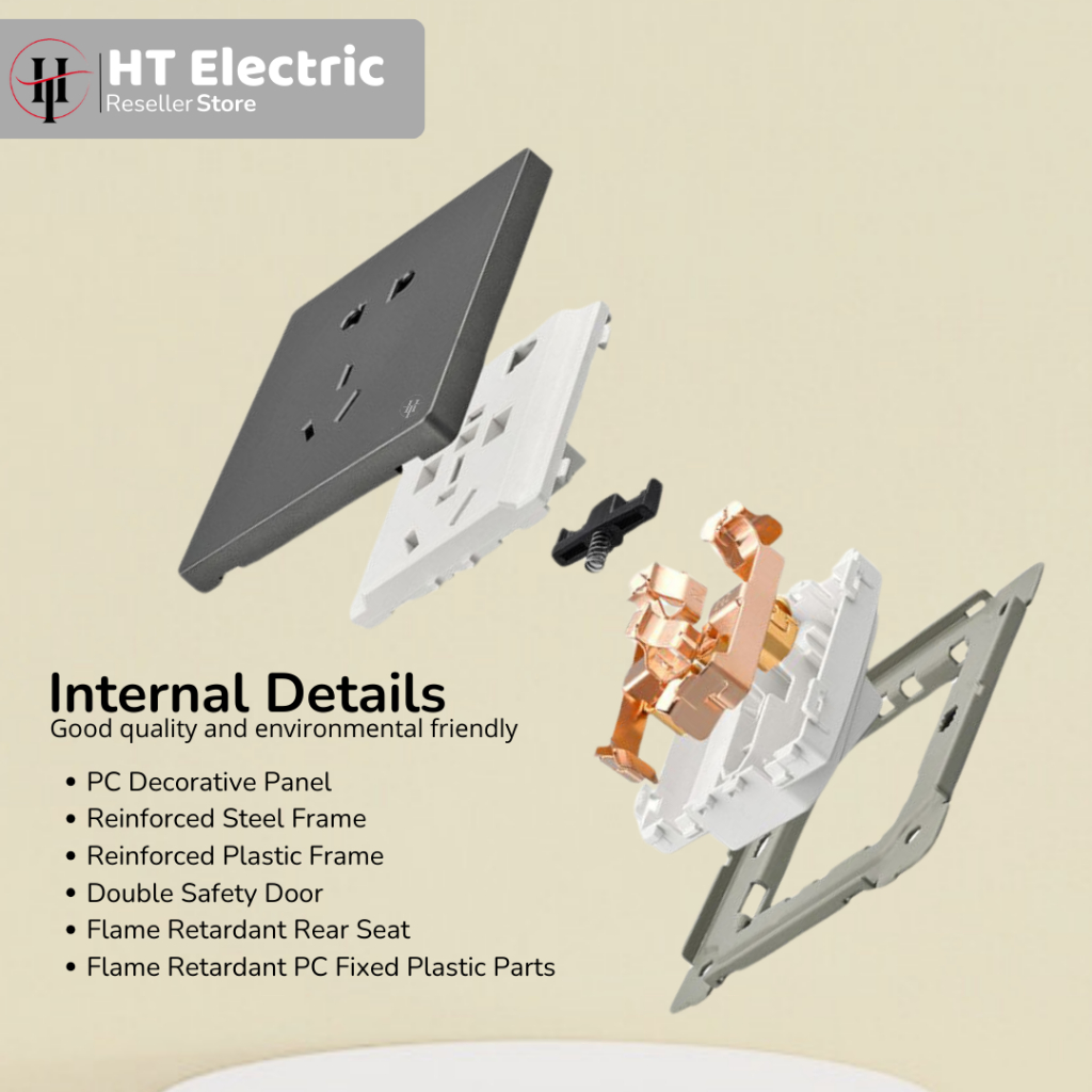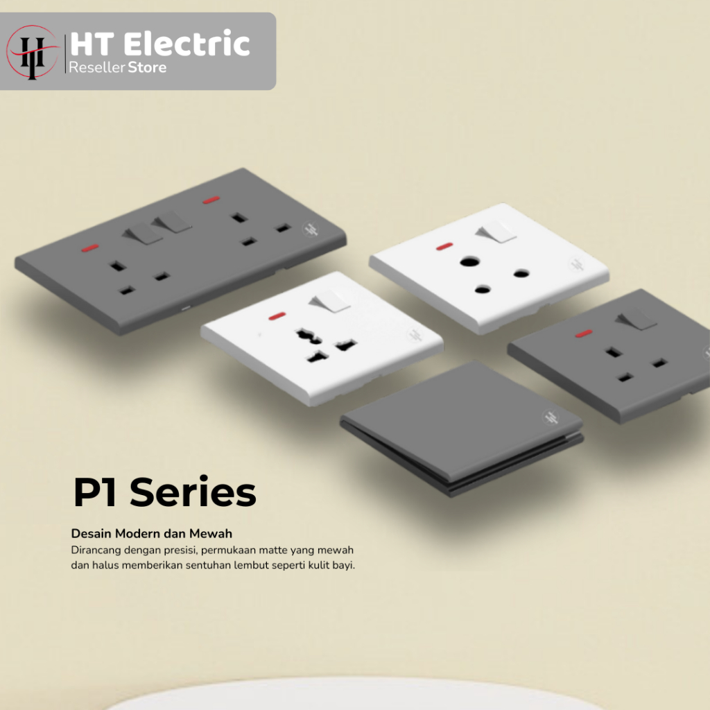 Saklar Lampu Rumah HT ELECTRIC P1 Skin Felling Grey Saklar Stop Kontak Framless