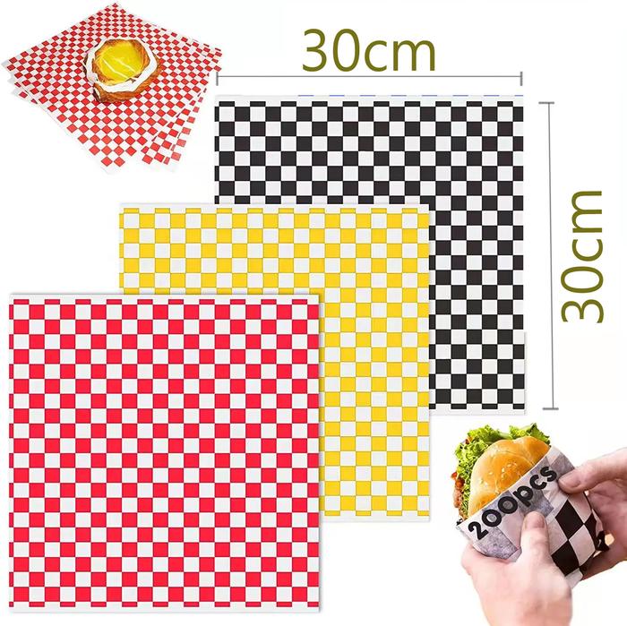 Kertas Alas Roti Motif Catur 30cmx30cm Foodgrade - Wrappaper/Kertas Bungkus Makanan Kekinian (200pcs) - Hitam 200pcs