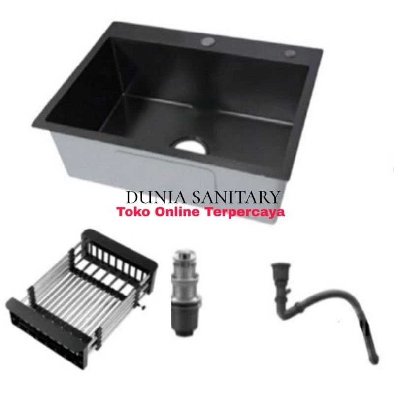 PROMO!! Paket Kitchen Sink stainless SUS 304 HANDMADE HM 6045 BLACK Bak cuci piring Hitam 60 cm Tirisan Tarik