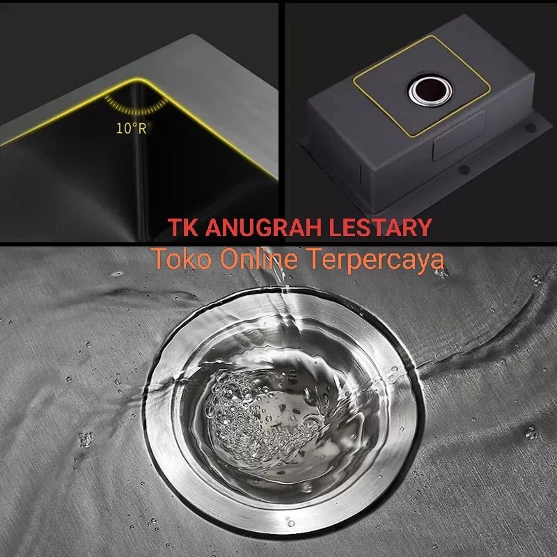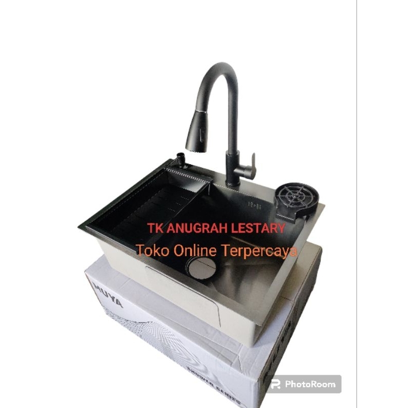 Paket Lengkap Kitchen Sink 6045 BLACK Paket Kran Tarik+Cuci gelas Hitam