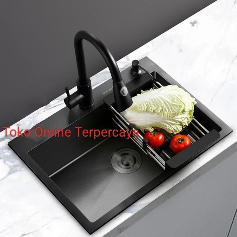Paket Lengkap Kitchen Sink JKM 5243 BLACK Paket Kran Tarik Stainless Hitam