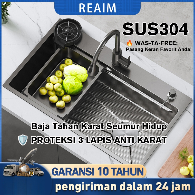 Kitchen Sink stainless Hitam ern Kitchen Sink set High Quality Sink set lapisan anti karat nano Wastafel Anti Karat Seum