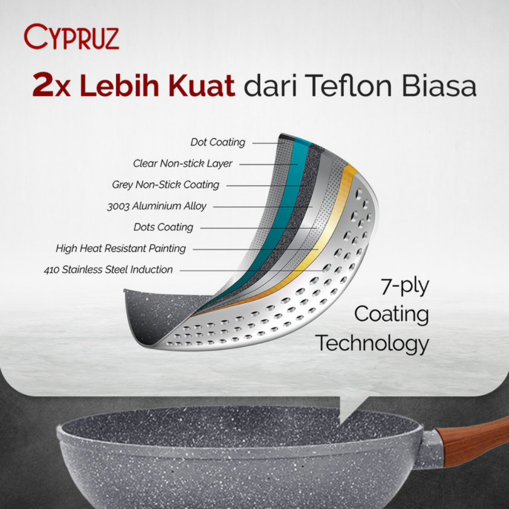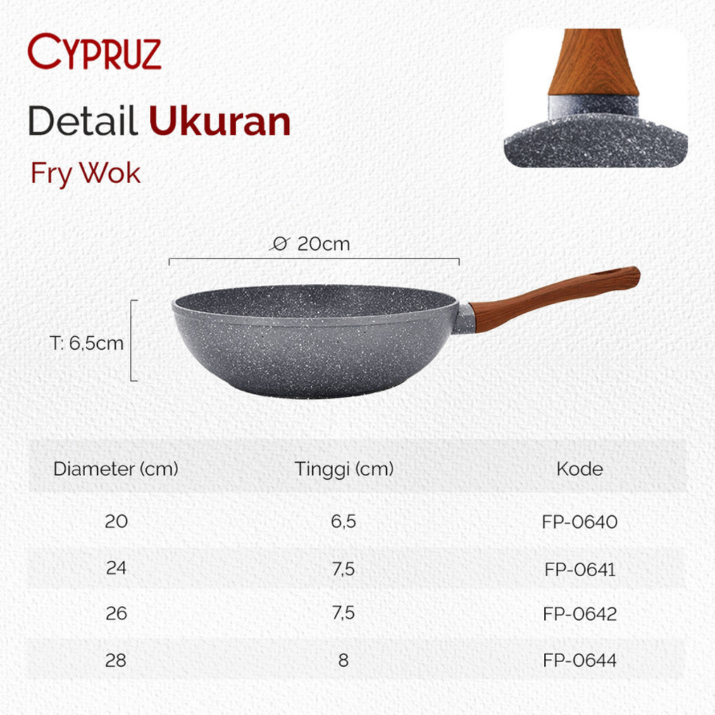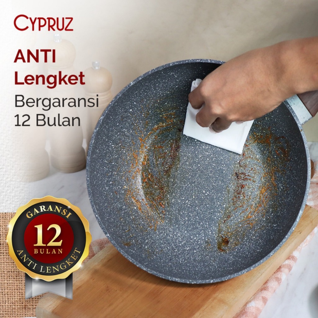 Cypruz Fry Wok Marble Wajan Anti Lengket Terbaik Cocok Semua Kompor Terlaris & Original 20 - 28 cm