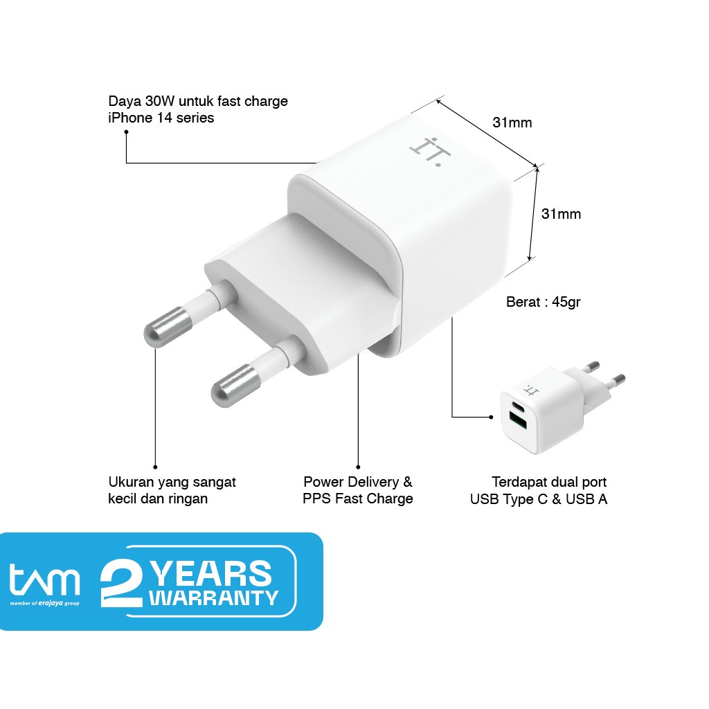 IT Plug 30 W Wall Charger Cube - White