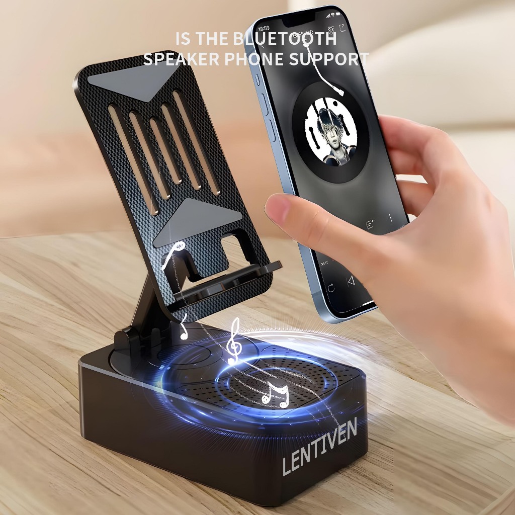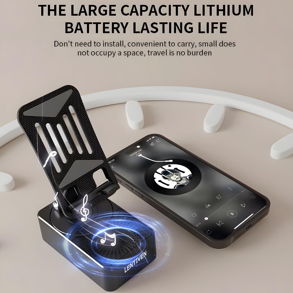 LENTIVEN PowerBank Foldable With Speaker Stand Handphone 3 In 1 Bluetooth Wireless Karaoke WY230