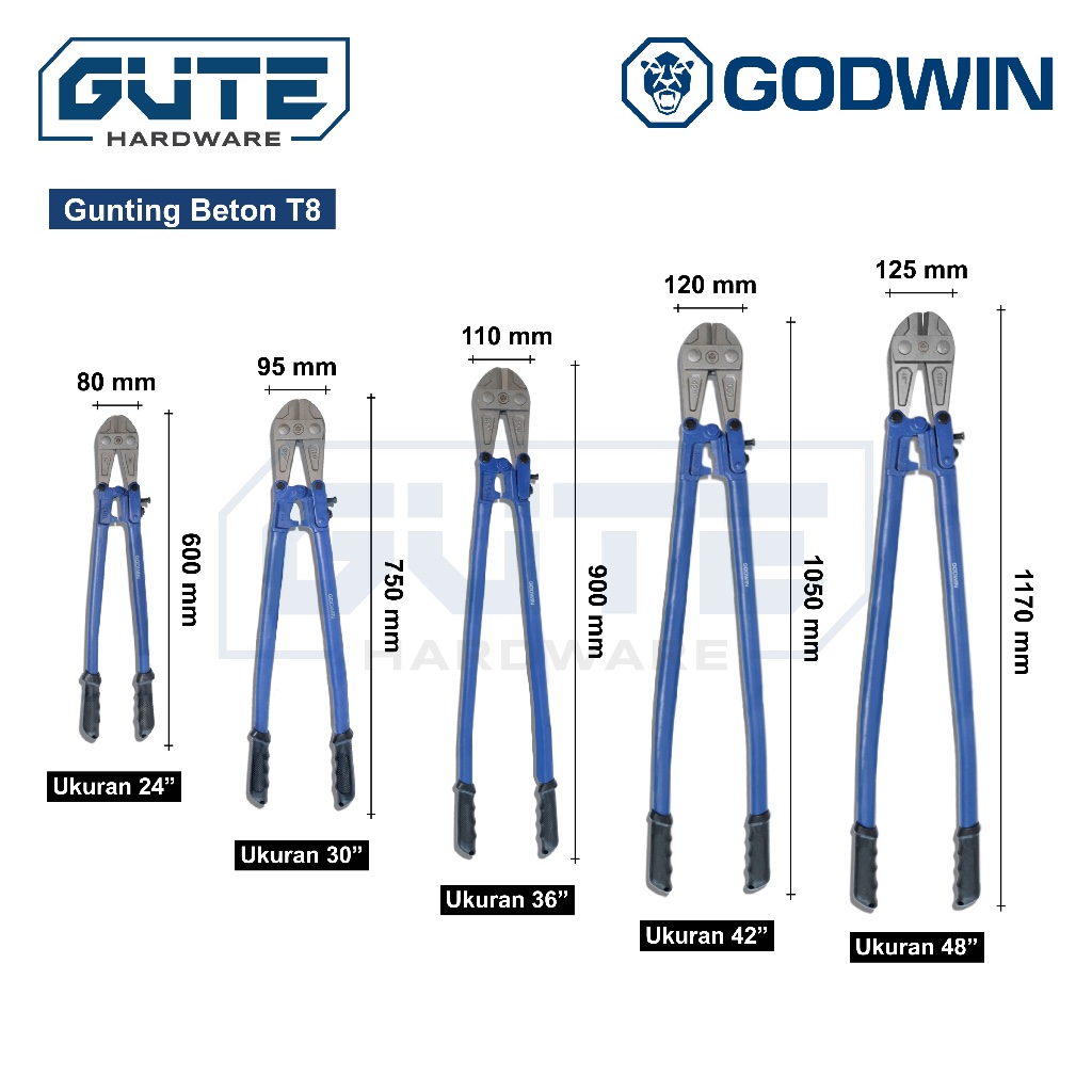 Gunting Besi Beton / Bolt Cutter "Godwin" Uk 48 Inch (1200mm) Untuk Besi Beton / Kawat / Rantai