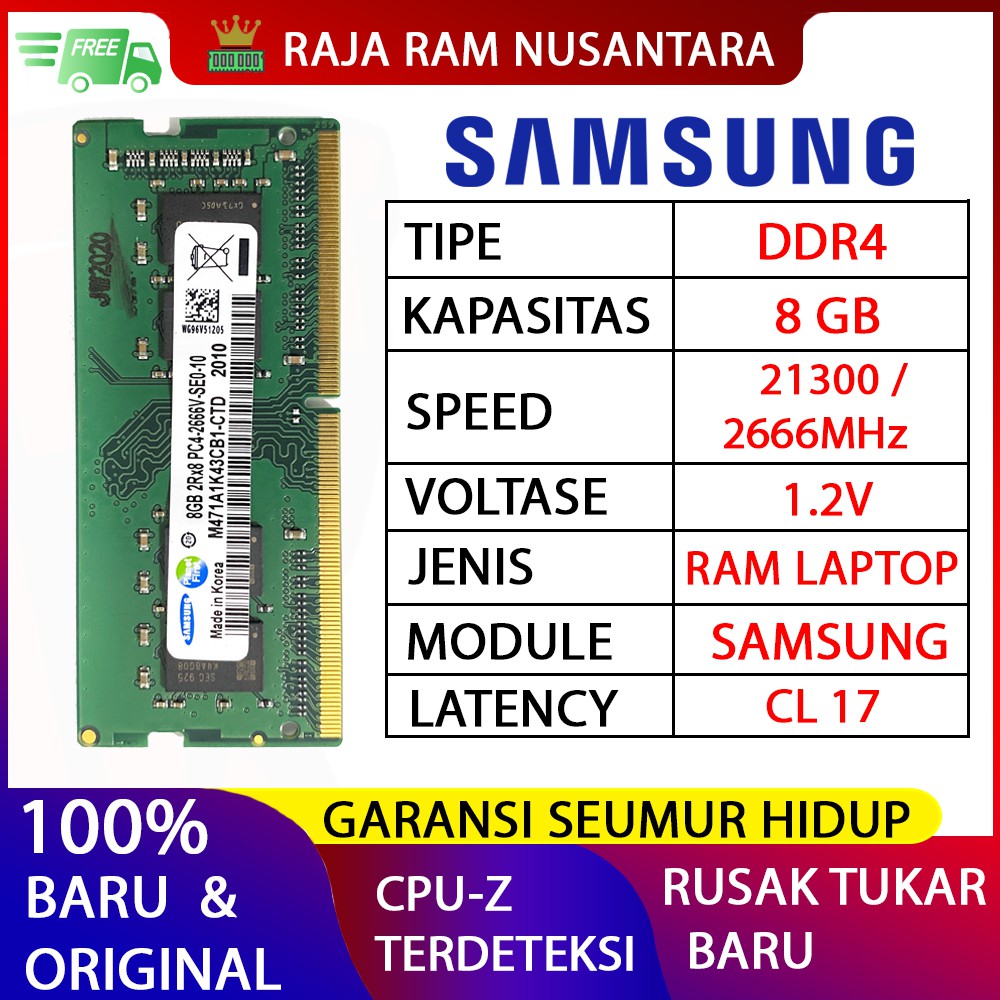 RAM LAPTOP SAMSUNG DDR4 8GB PC 21300 / 2666 MHz ORI GAMING RAM SODIMM 1.2v 8GB