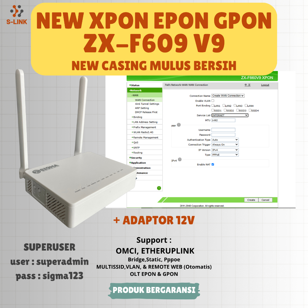 XPON EPON-GPON F609V9 DENGAN ADAPTOR
