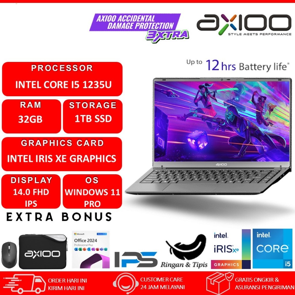 laptop Axioo MyBook Hype 5 Intel Core i5 1235U Ram 32GB 512GB SSD FHD IPS Windows 11
