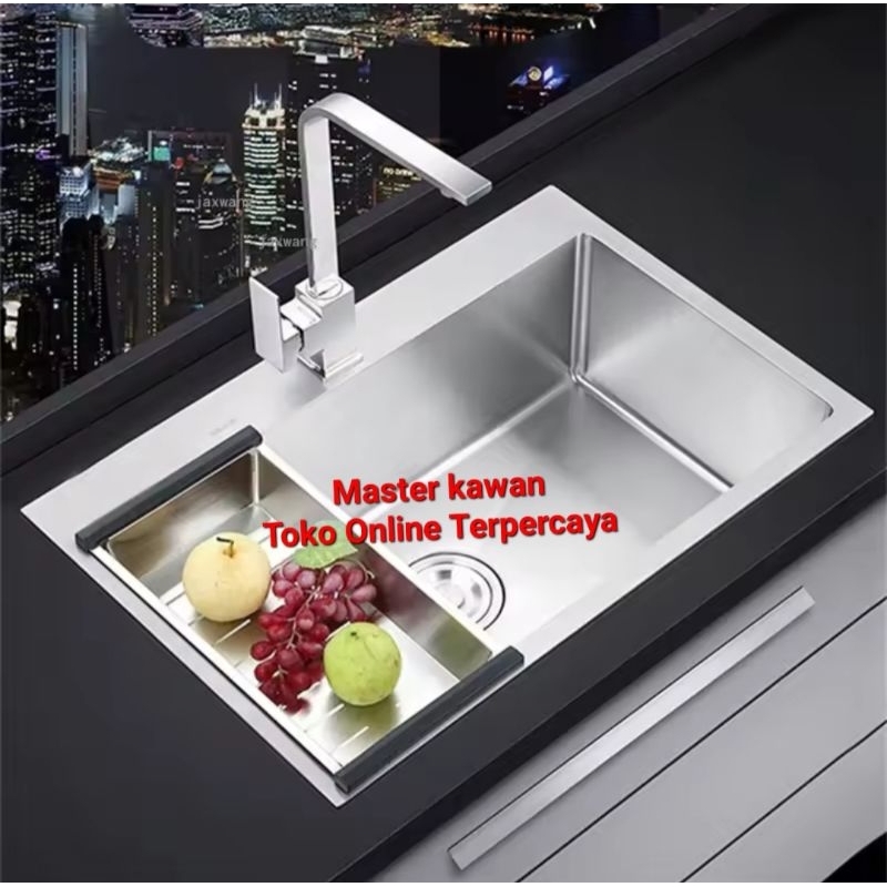 HAND-MADE Kitchen Sink 6045 Stainless SUS 304 /Kitchen Sink 6045 + Kran Tarik Fleksibel Stainless SUS 304
